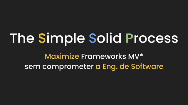 The Simple Solid Process é um método de desenvolvimento (+ bibliotecas) que nasceu e se provou no Ruby/Rails, mas que pode ser aplicado em qualquer outra stack. Ele possibilita equilibrar velocidade com qualidade, mantendo a eficiência do uso do framework sem abrir mão de princípios da engenharia de software.