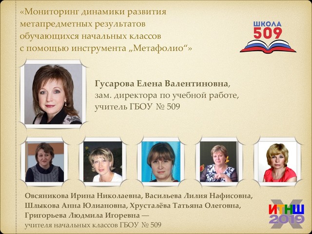 учитель ГБОУ № 509 Овсяникова Ирина Николаевна, Васильева Лилия Нафисовна, Шлыкова Анна Юлиановна, Хрусталёва Татьяна Олеговна,