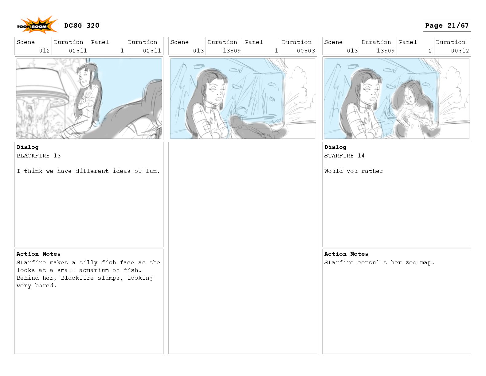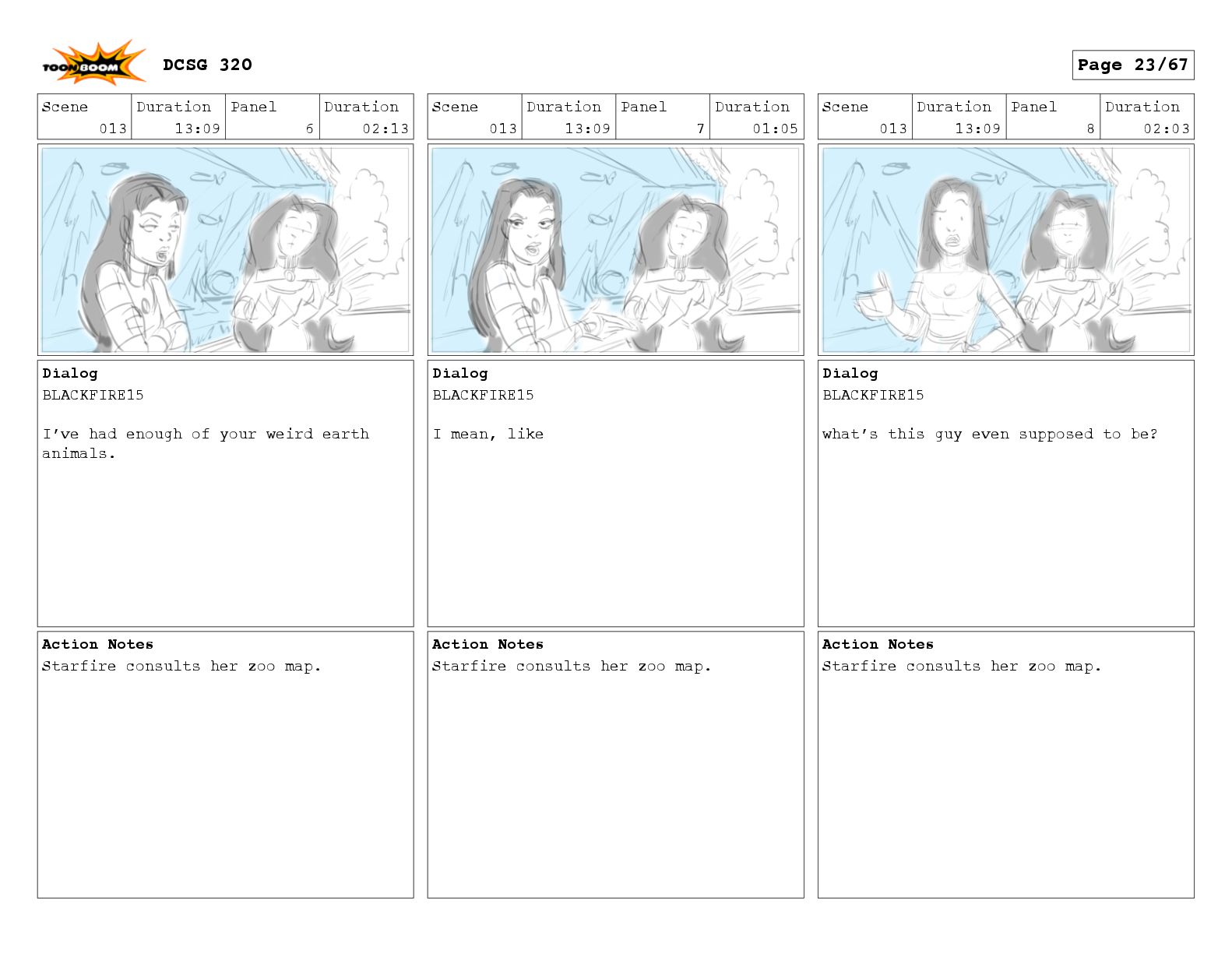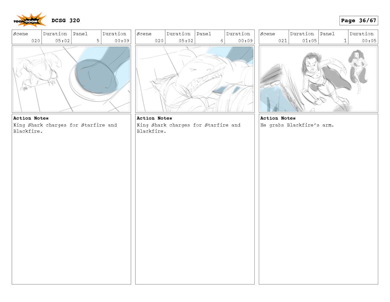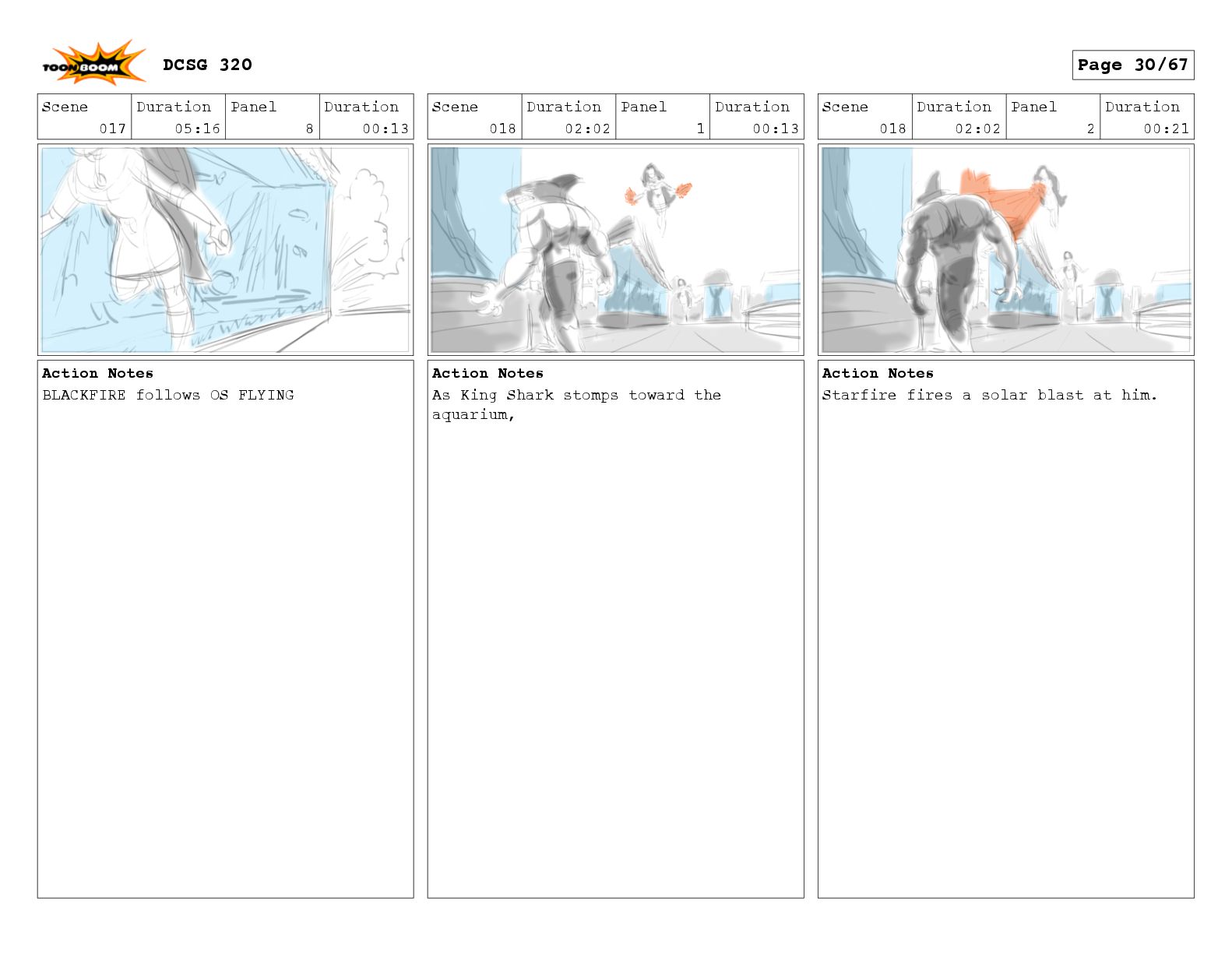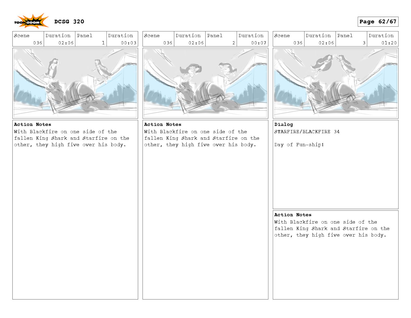 and dumps its contents over Blackfire’s head. SODER COLA cans, water bottles and ice rain down Blackfire. She peeks out from the pile of drinks, looking miserable. Scene 006 Duration 03:02 Panel 5 Duration 00:13 Action Notes and dumps its contents over Blackfire’s head. SODER COLA cans, water bottles and ice rain down Blackfire. She peeks out from the pile of drinks, looking miserable. Scene 006 Duration 03:02 Panel 6 Duration 00:13 Action Notes and dumps its contents over Blackfire’s head. SODER COLA cans, water bottles and ice rain down Blackfire. She peeks out from the pile of drinks, looking miserable. DCSG 320 Page 12/67