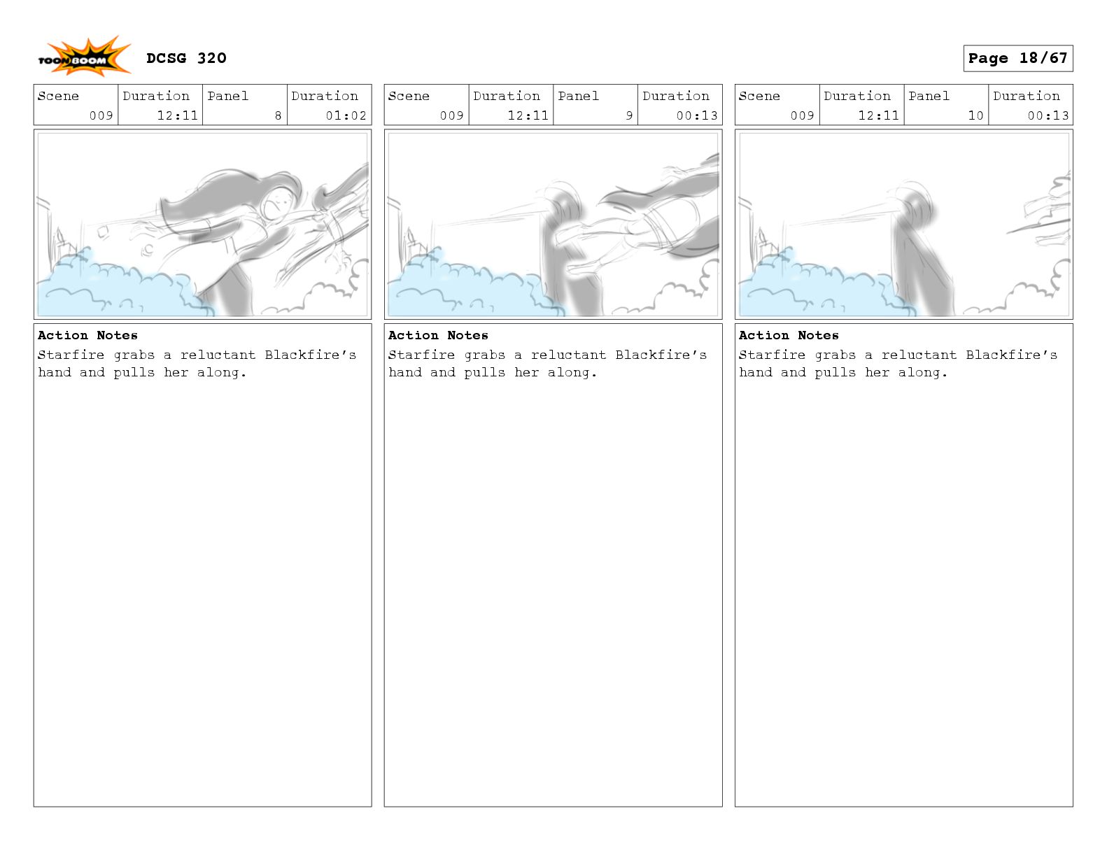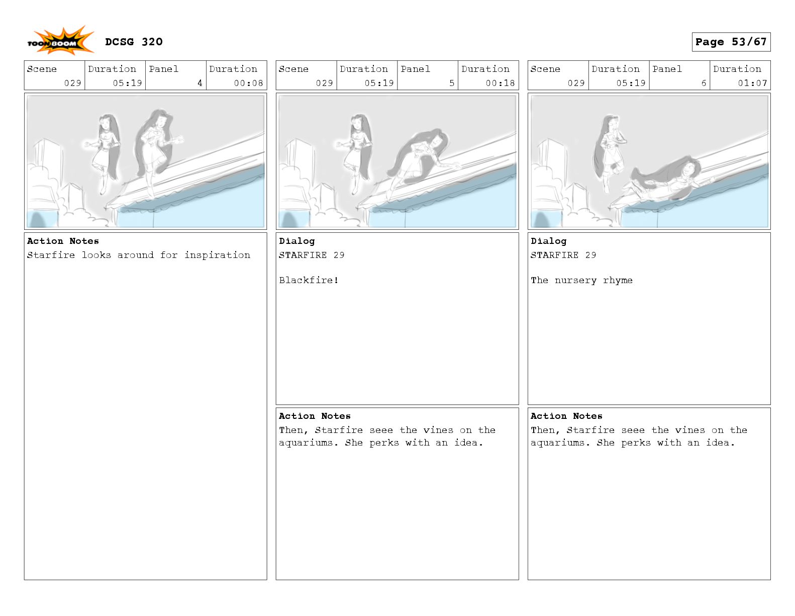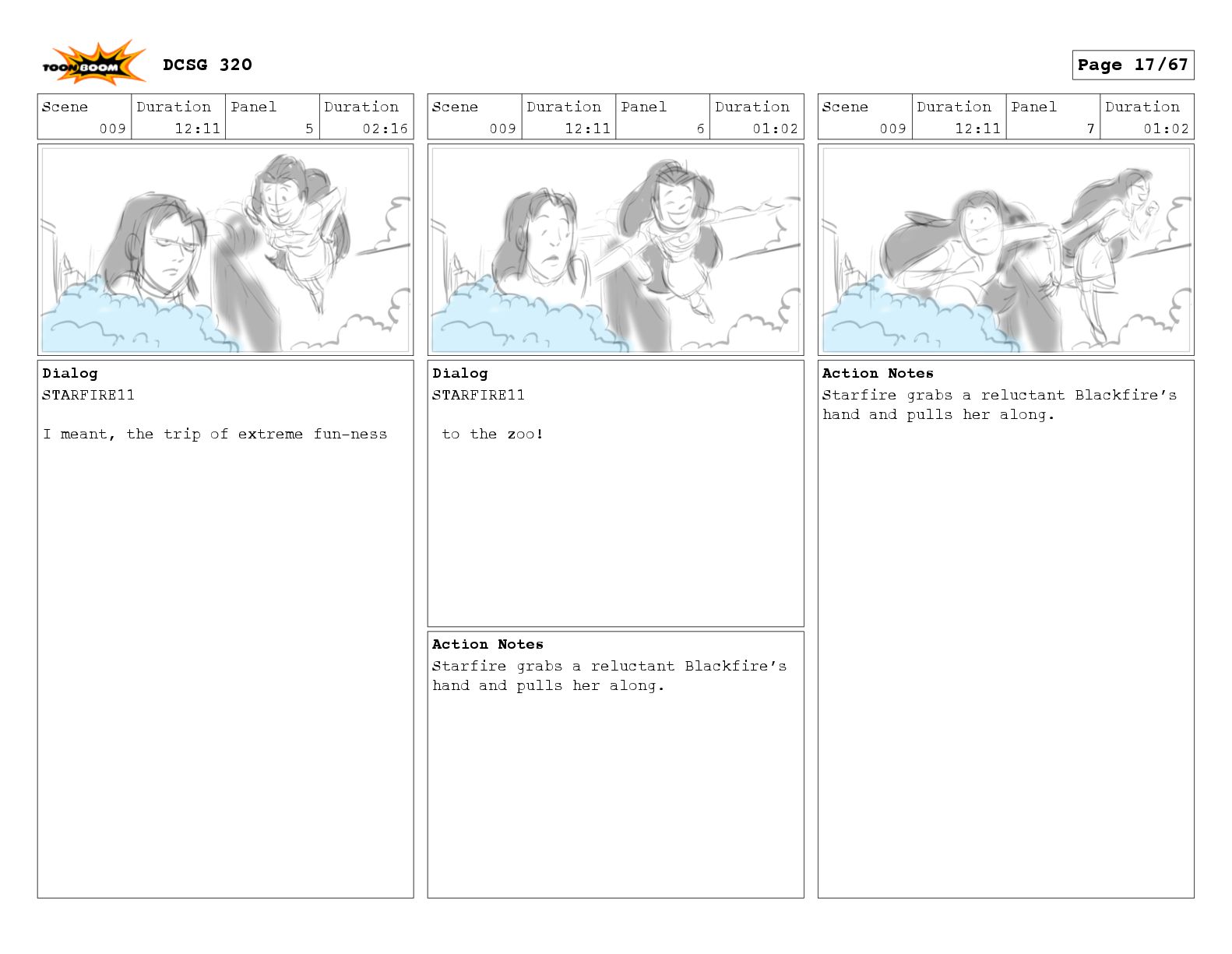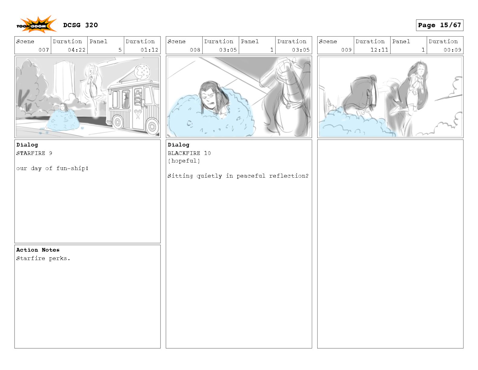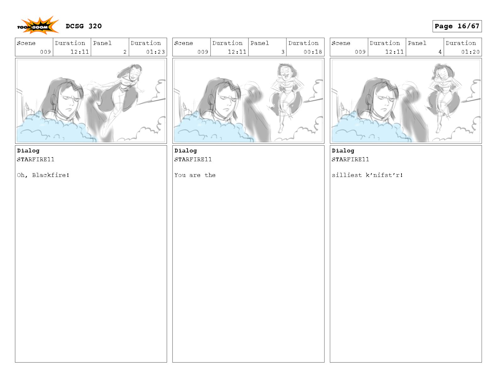 and dumps its contents over Blackfire’s head. SODER COLA cans, water bottles and ice rain down Blackfire. She peeks out from the pile of drinks, looking miserable. Scene 006 Duration 03:02 Panel 5 Duration 00:13 Action Notes and dumps its contents over Blackfire’s head. SODER COLA cans, water bottles and ice rain down Blackfire. She peeks out from the pile of drinks, looking miserable. Scene 006 Duration 03:02 Panel 6 Duration 00:13 Action Notes and dumps its contents over Blackfire’s head. SODER COLA cans, water bottles and ice rain down Blackfire. She peeks out from the pile of drinks, looking miserable. DCSG 320 Page 12/67