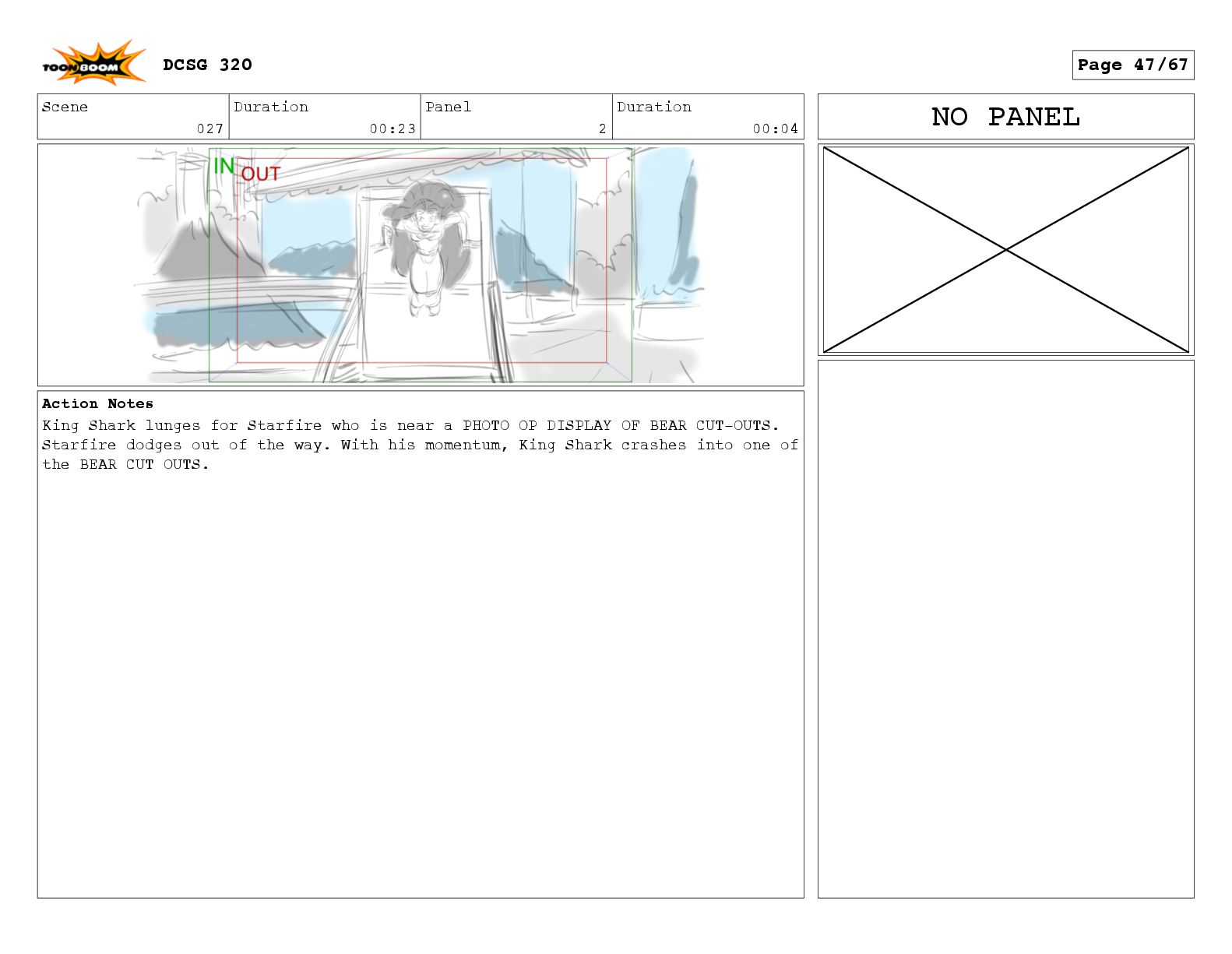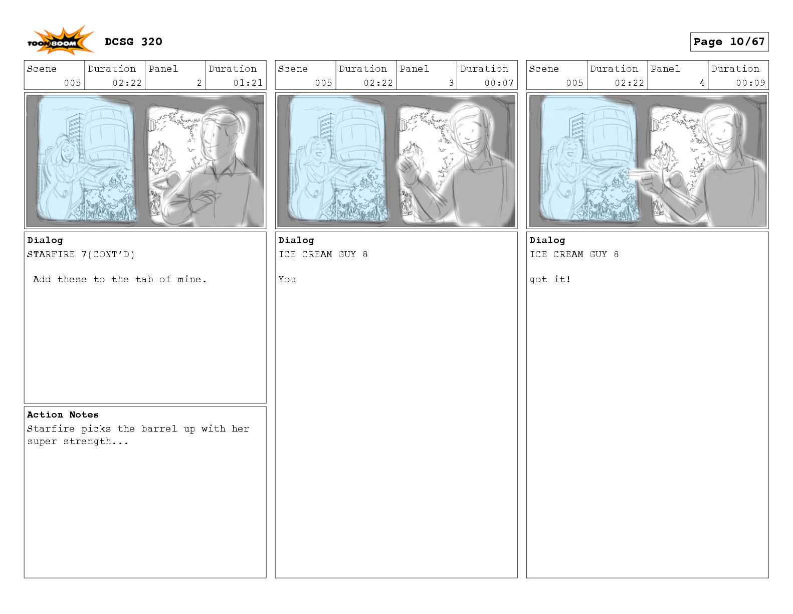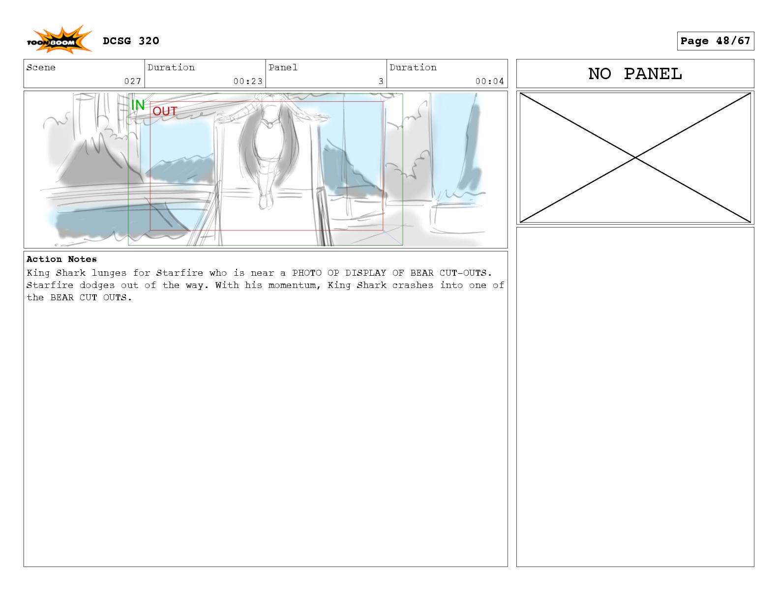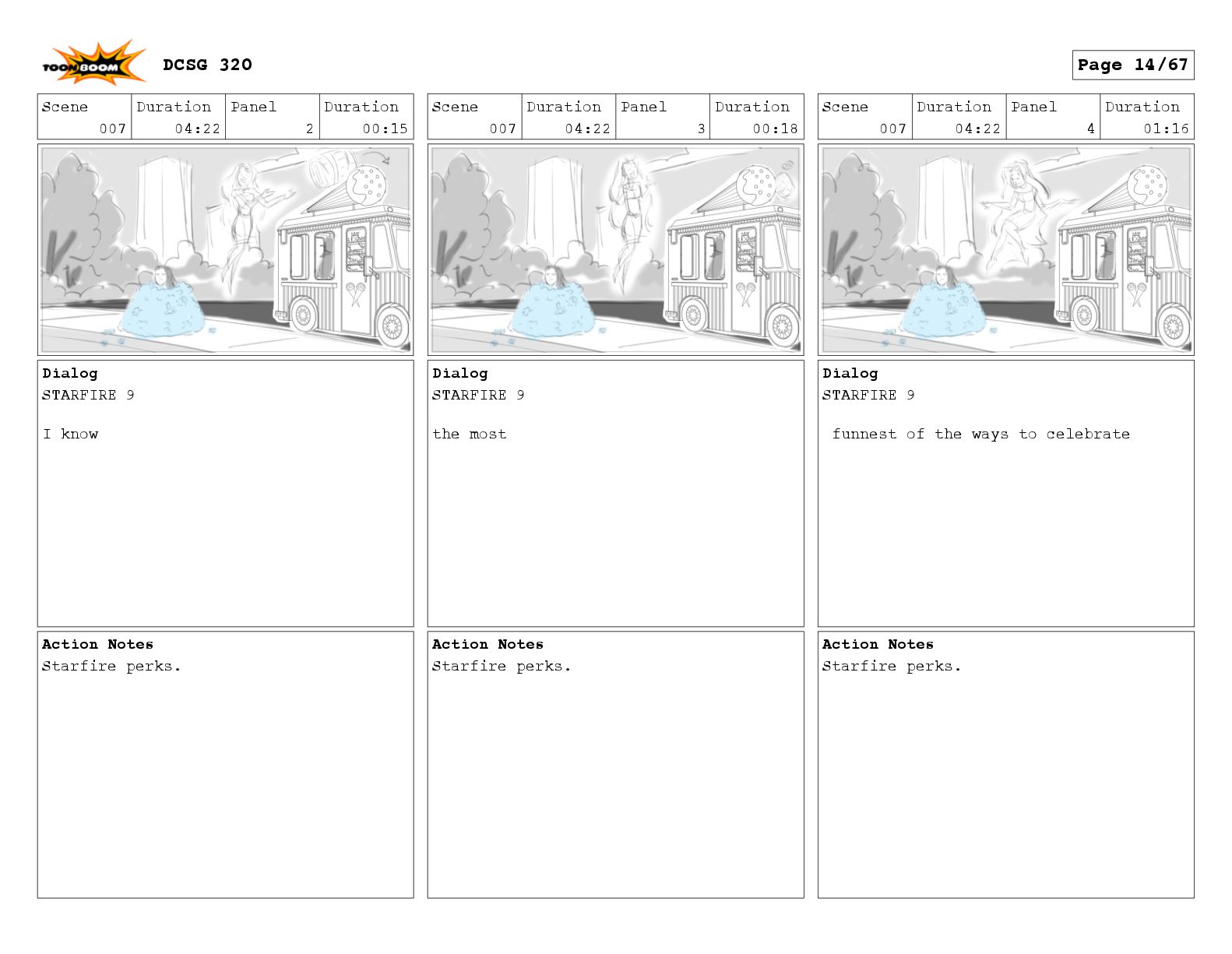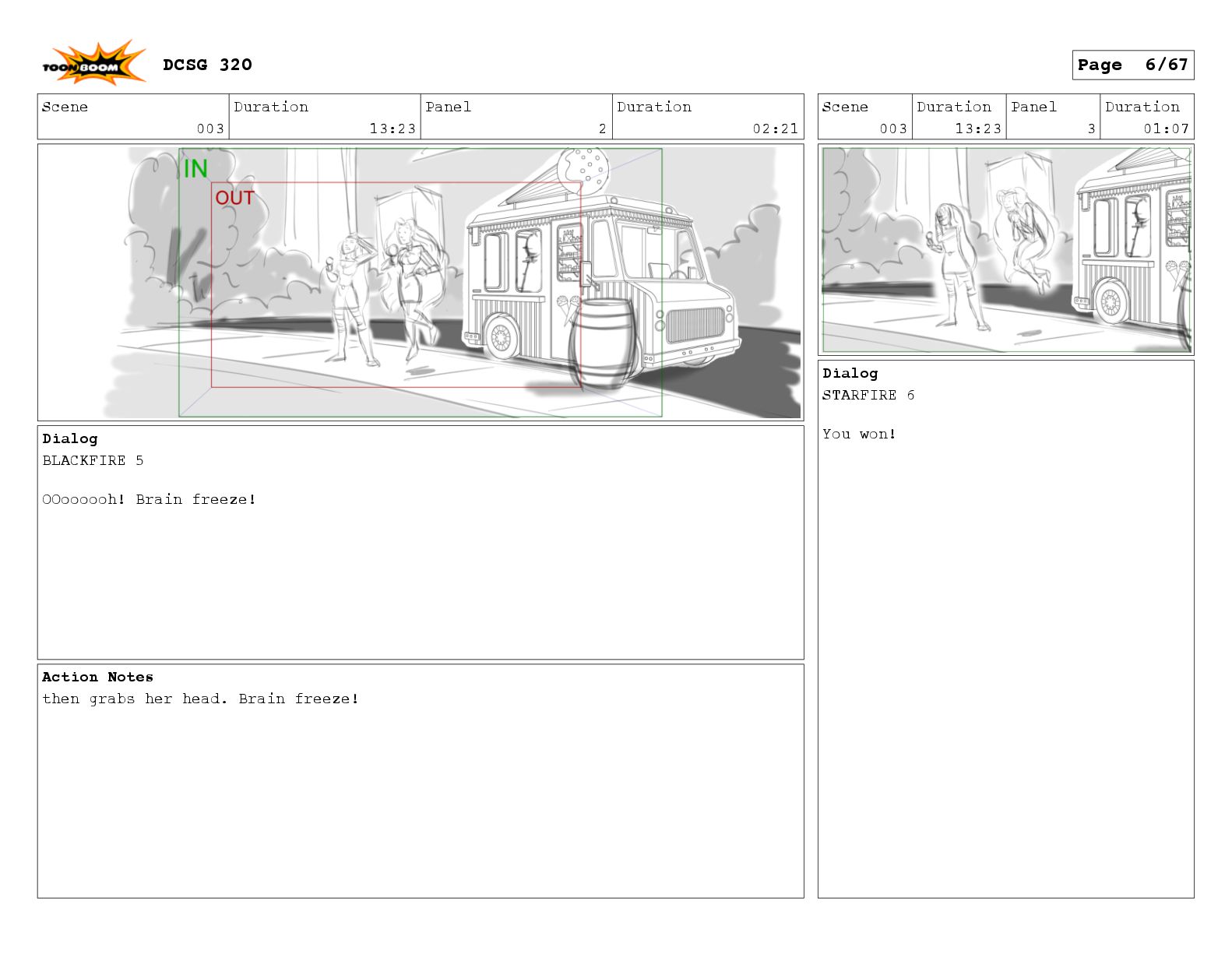 and dumps its contents over Blackfire’s head. SODER COLA cans, water bottles and ice rain down Blackfire. She peeks out from the pile of drinks, looking miserable. Scene 006 Duration 03:02 Panel 5 Duration 00:13 Action Notes and dumps its contents over Blackfire’s head. SODER COLA cans, water bottles and ice rain down Blackfire. She peeks out from the pile of drinks, looking miserable. Scene 006 Duration 03:02 Panel 6 Duration 00:13 Action Notes and dumps its contents over Blackfire’s head. SODER COLA cans, water bottles and ice rain down Blackfire. She peeks out from the pile of drinks, looking miserable. DCSG 320 Page 12/67