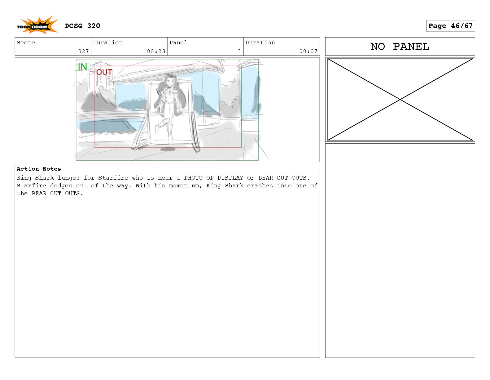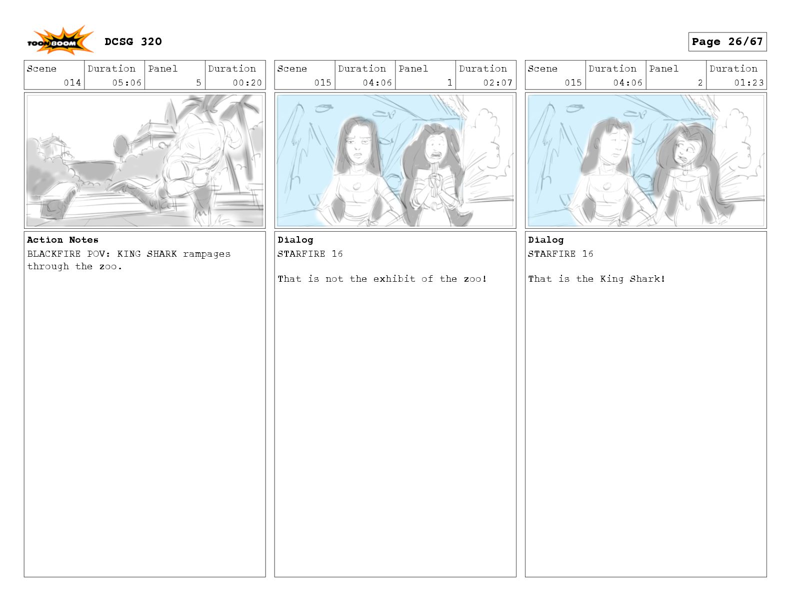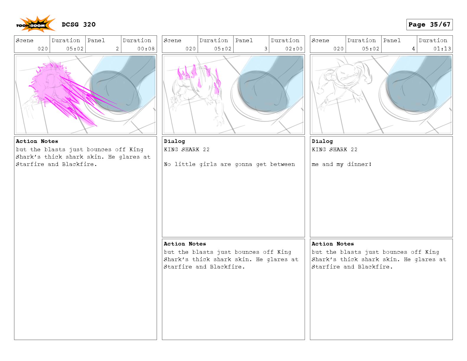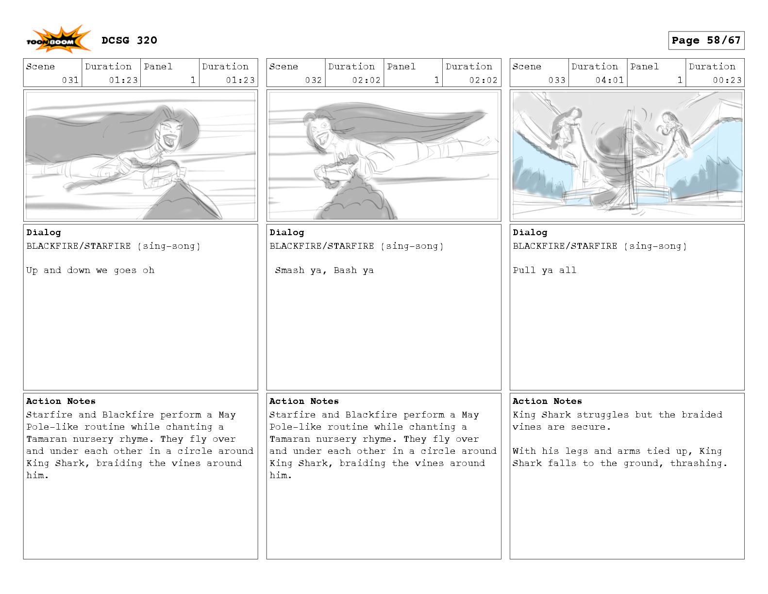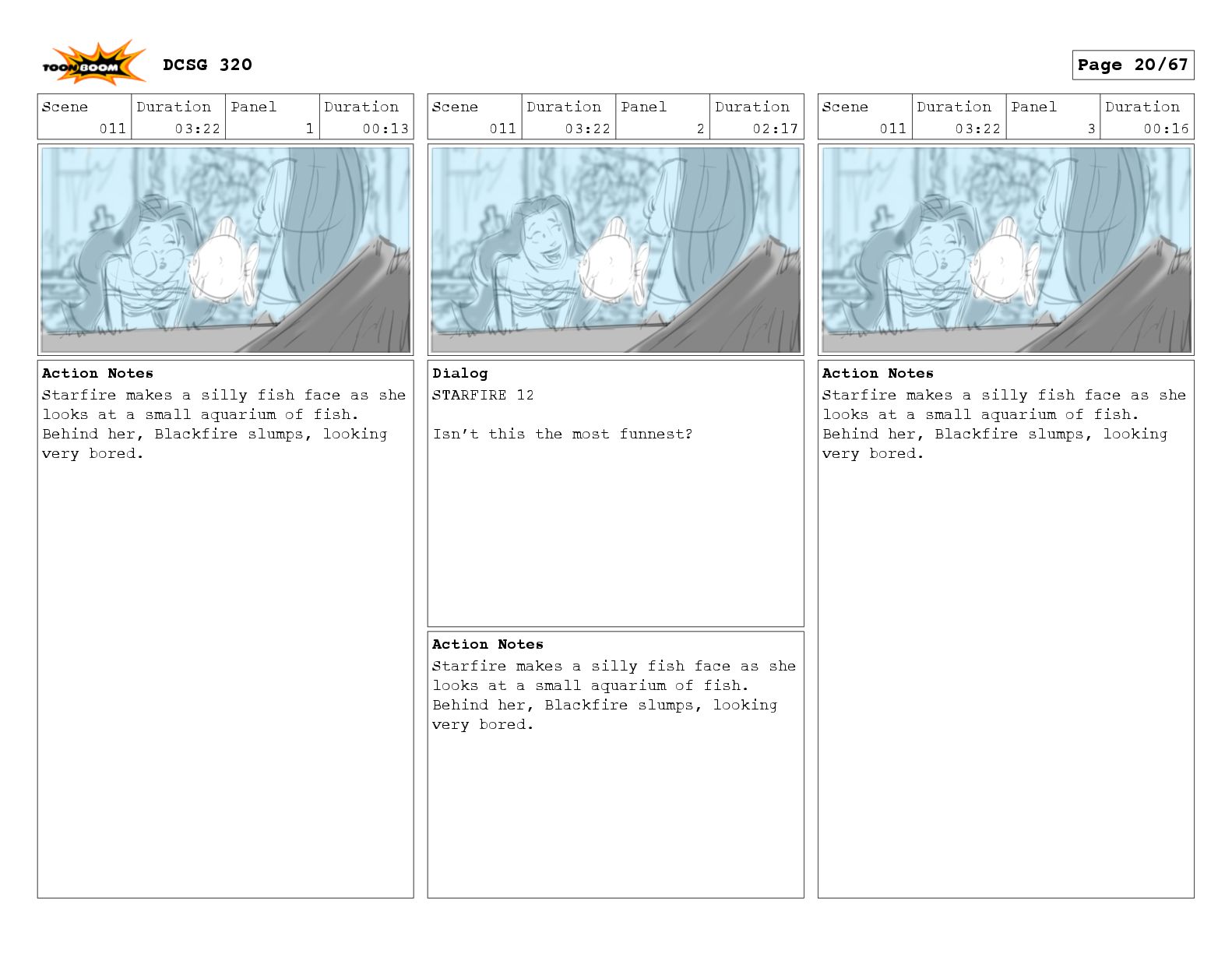 and dumps its contents over Blackfire’s head. SODER COLA cans, water bottles and ice rain down Blackfire. She peeks out from the pile of drinks, looking miserable. Scene 006 Duration 03:02 Panel 5 Duration 00:13 Action Notes and dumps its contents over Blackfire’s head. SODER COLA cans, water bottles and ice rain down Blackfire. She peeks out from the pile of drinks, looking miserable. Scene 006 Duration 03:02 Panel 6 Duration 00:13 Action Notes and dumps its contents over Blackfire’s head. SODER COLA cans, water bottles and ice rain down Blackfire. She peeks out from the pile of drinks, looking miserable. DCSG 320 Page 12/67