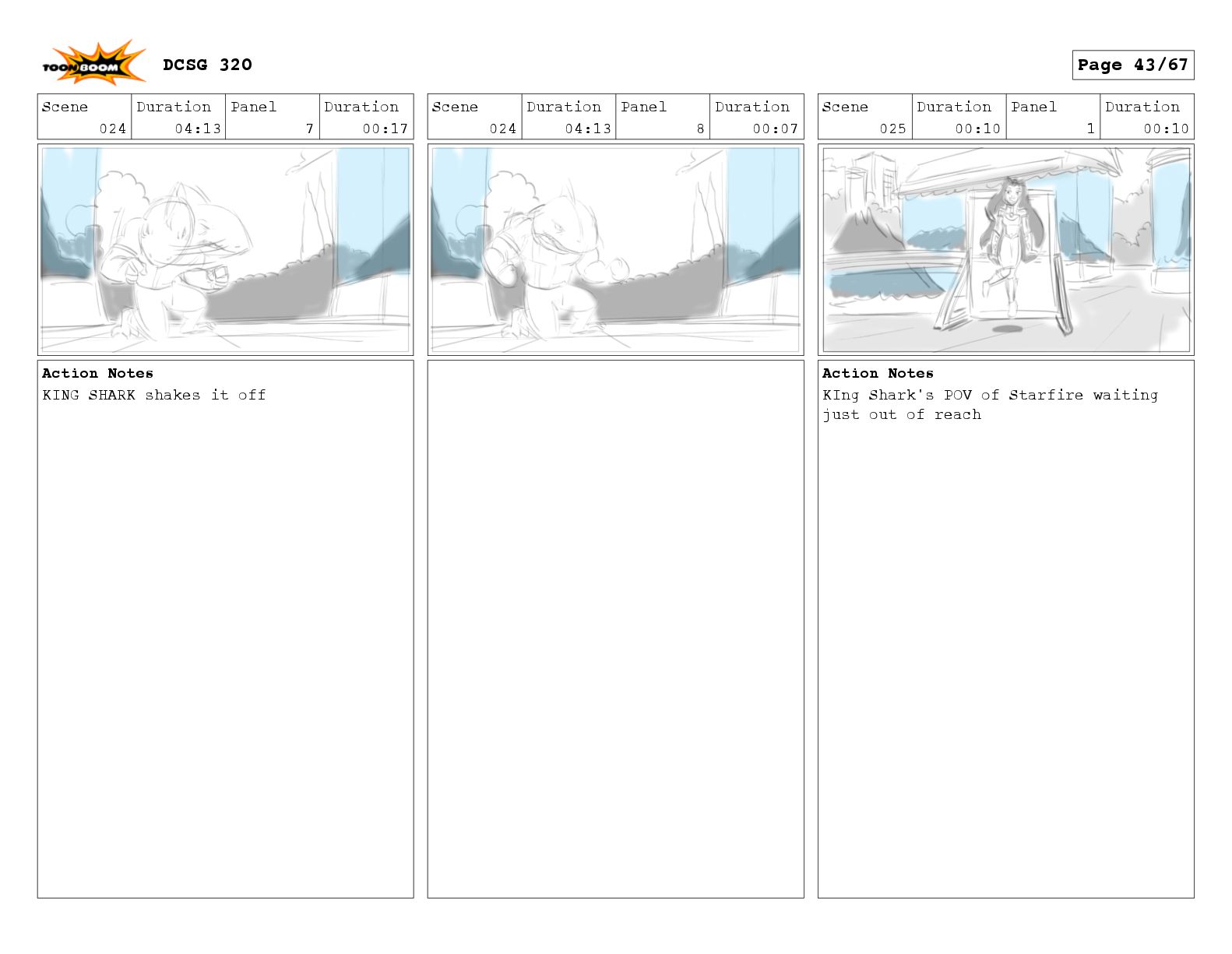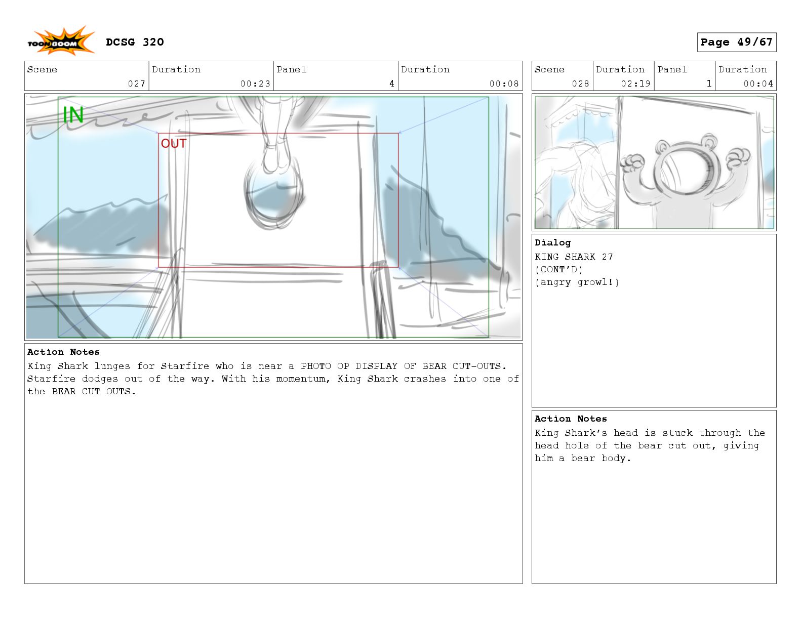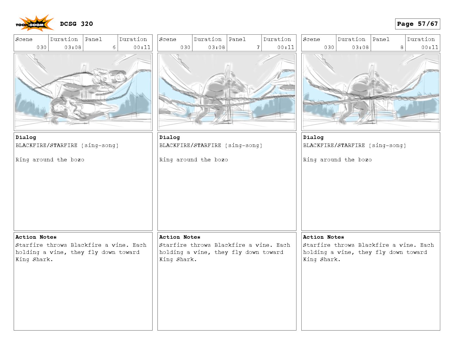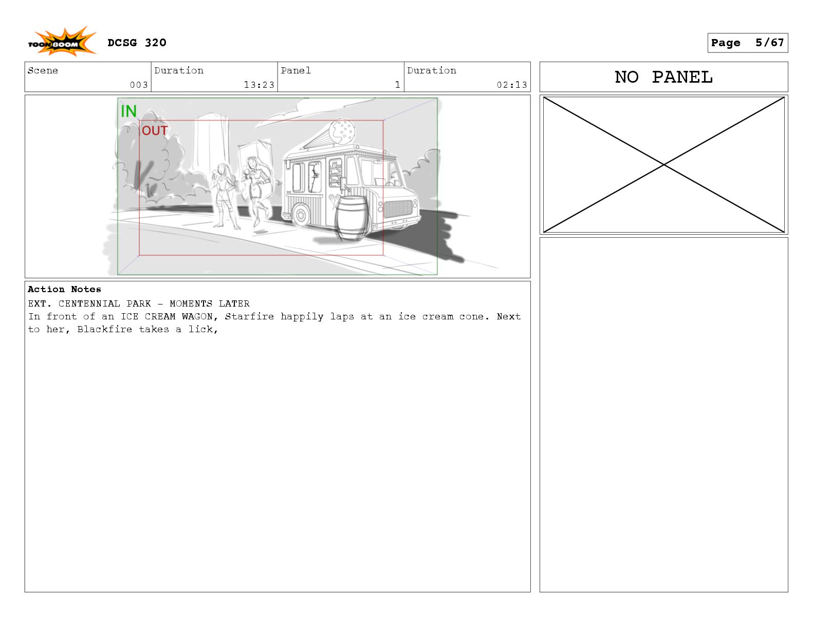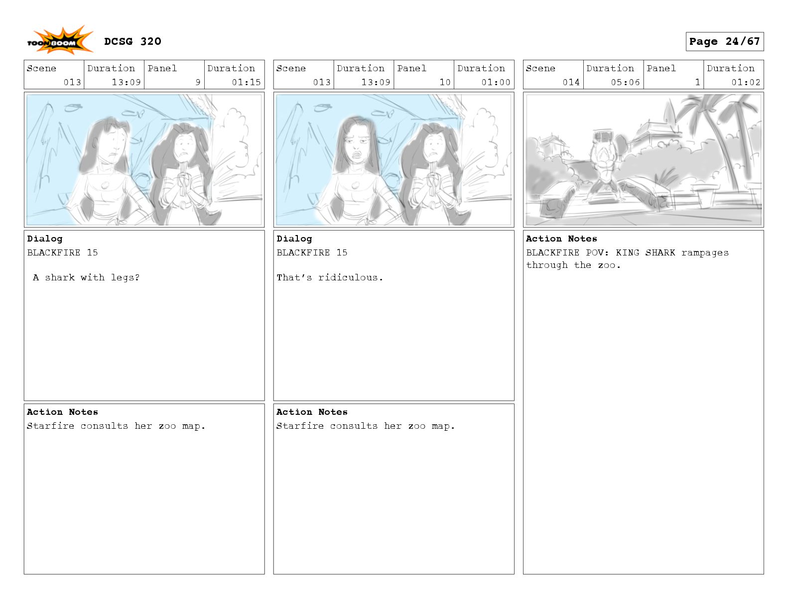 and dumps its contents over Blackfire’s head. SODER COLA cans, water bottles and ice rain down Blackfire. She peeks out from the pile of drinks, looking miserable. Scene 006 Duration 03:02 Panel 5 Duration 00:13 Action Notes and dumps its contents over Blackfire’s head. SODER COLA cans, water bottles and ice rain down Blackfire. She peeks out from the pile of drinks, looking miserable. Scene 006 Duration 03:02 Panel 6 Duration 00:13 Action Notes and dumps its contents over Blackfire’s head. SODER COLA cans, water bottles and ice rain down Blackfire. She peeks out from the pile of drinks, looking miserable. DCSG 320 Page 12/67