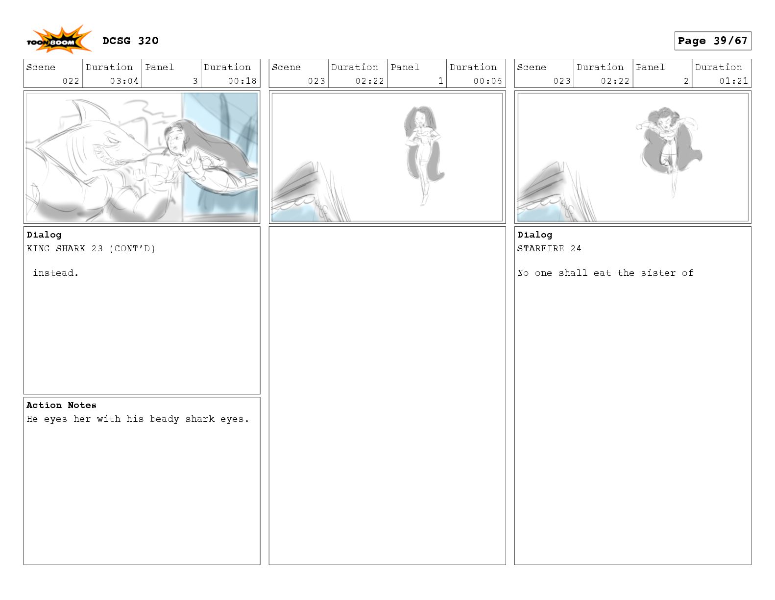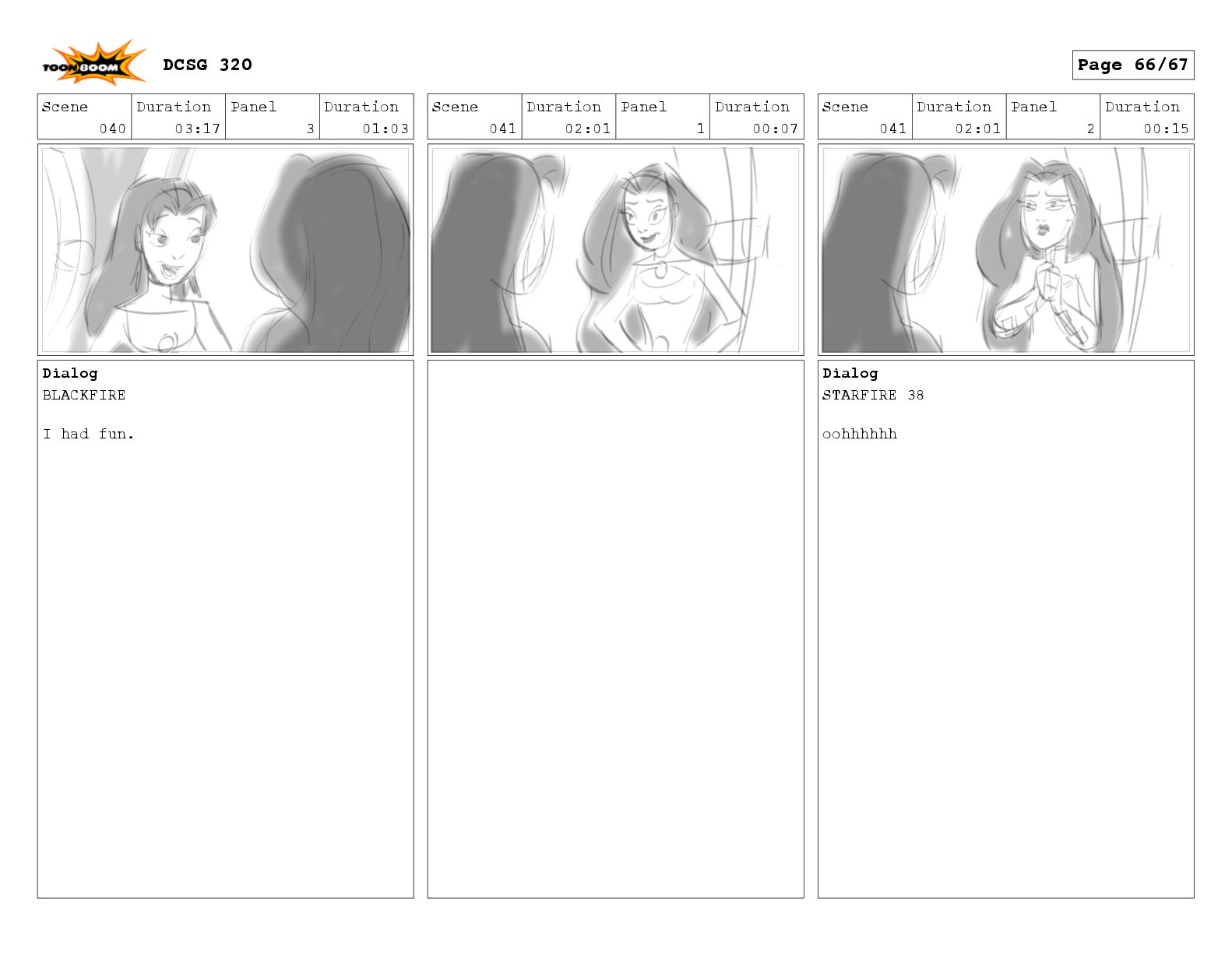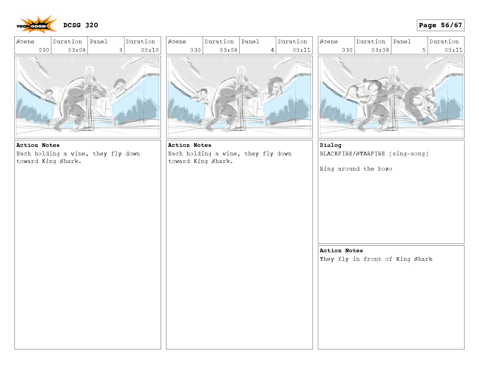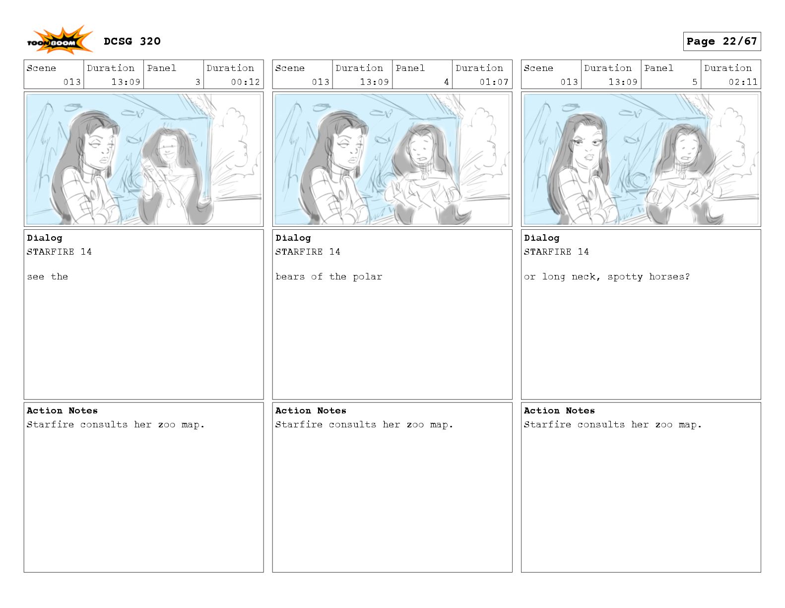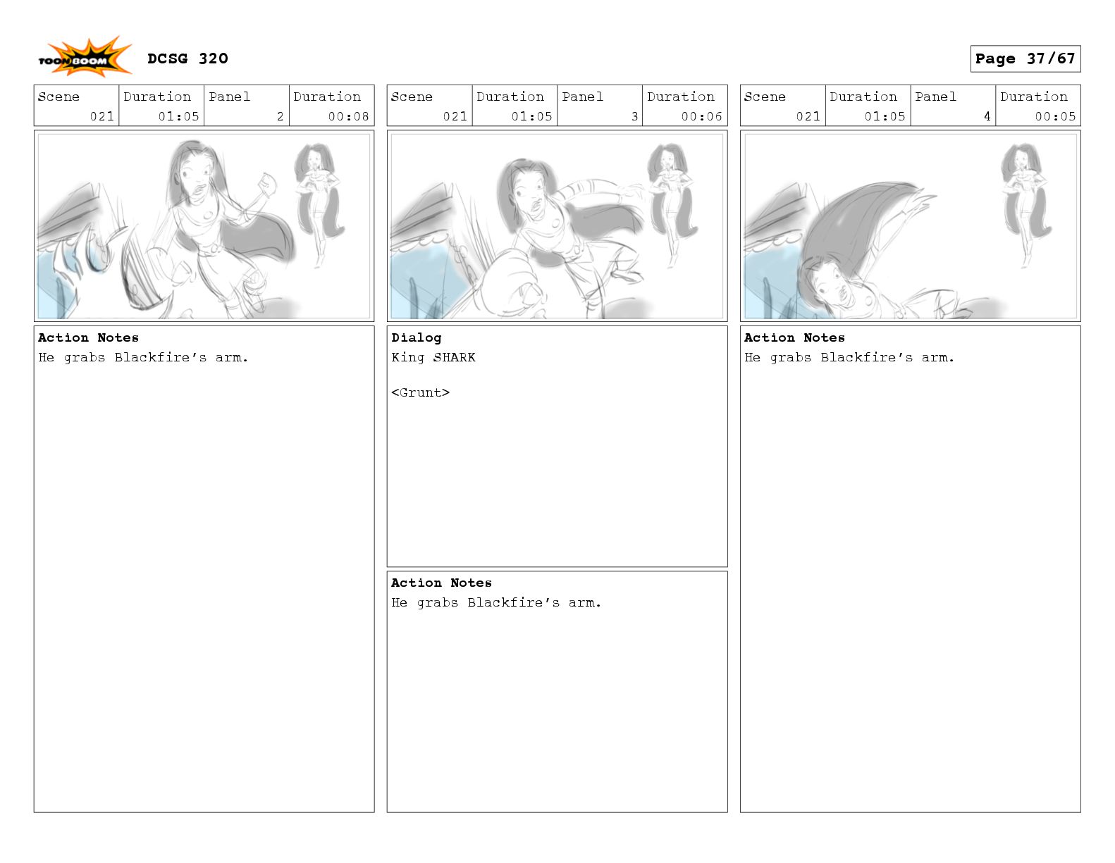 and dumps its contents over Blackfire’s head. SODER COLA cans, water bottles and ice rain down Blackfire. She peeks out from the pile of drinks, looking miserable. Scene 006 Duration 03:02 Panel 5 Duration 00:13 Action Notes and dumps its contents over Blackfire’s head. SODER COLA cans, water bottles and ice rain down Blackfire. She peeks out from the pile of drinks, looking miserable. Scene 006 Duration 03:02 Panel 6 Duration 00:13 Action Notes and dumps its contents over Blackfire’s head. SODER COLA cans, water bottles and ice rain down Blackfire. She peeks out from the pile of drinks, looking miserable. DCSG 320 Page 12/67