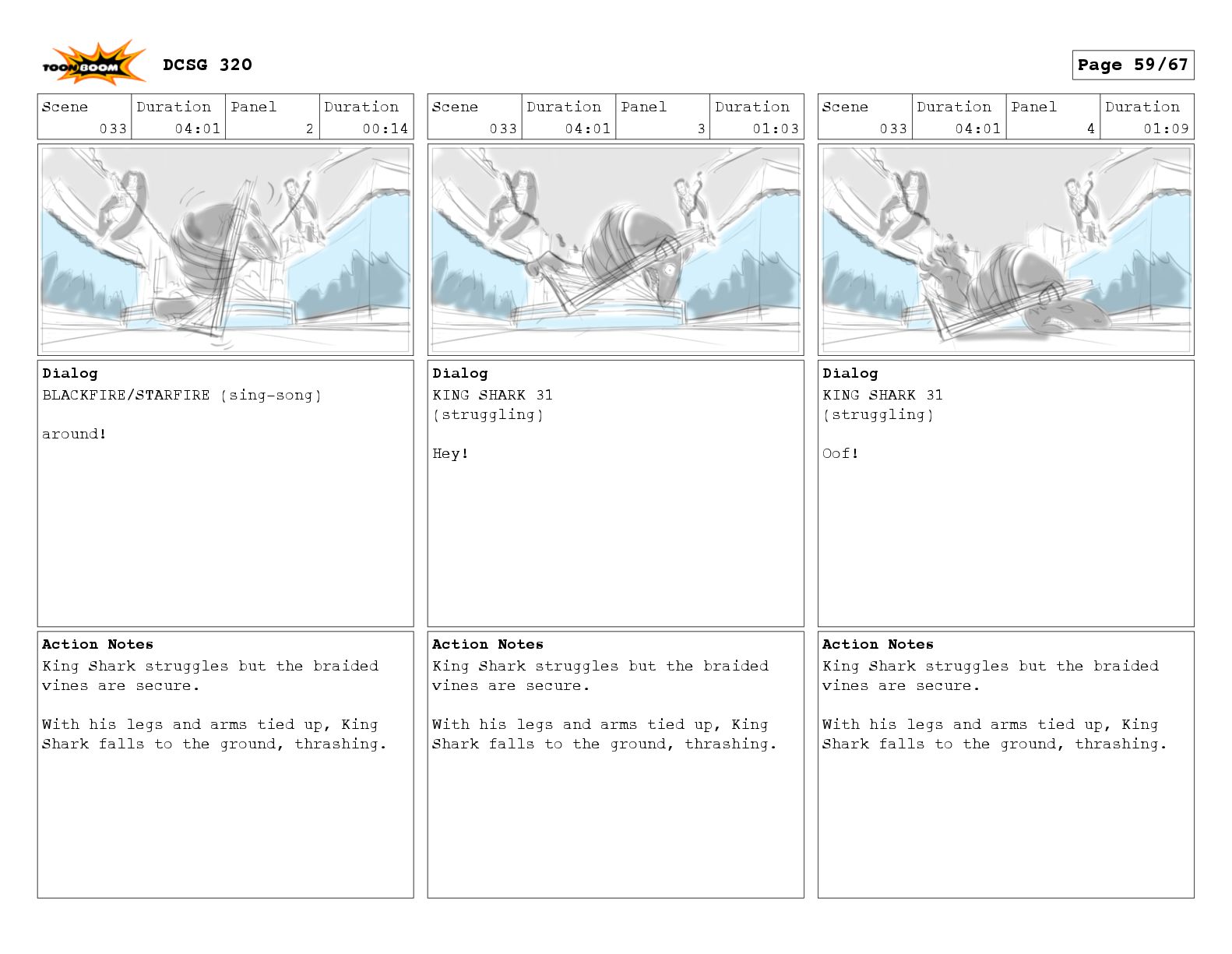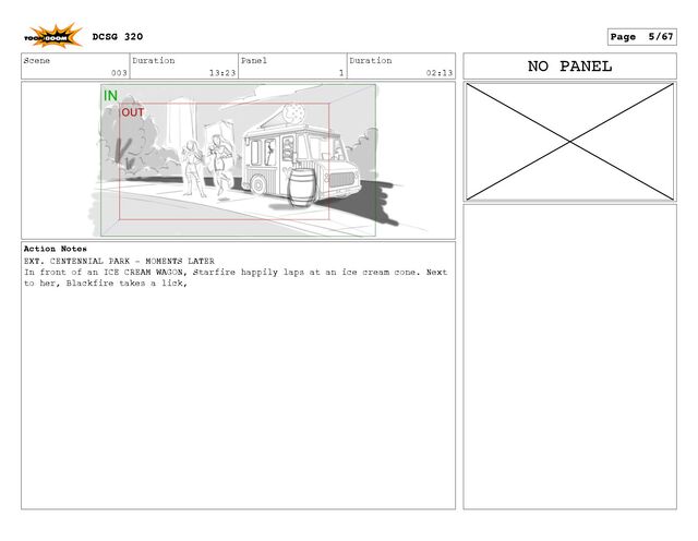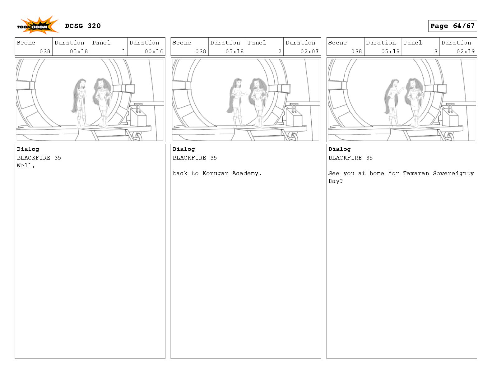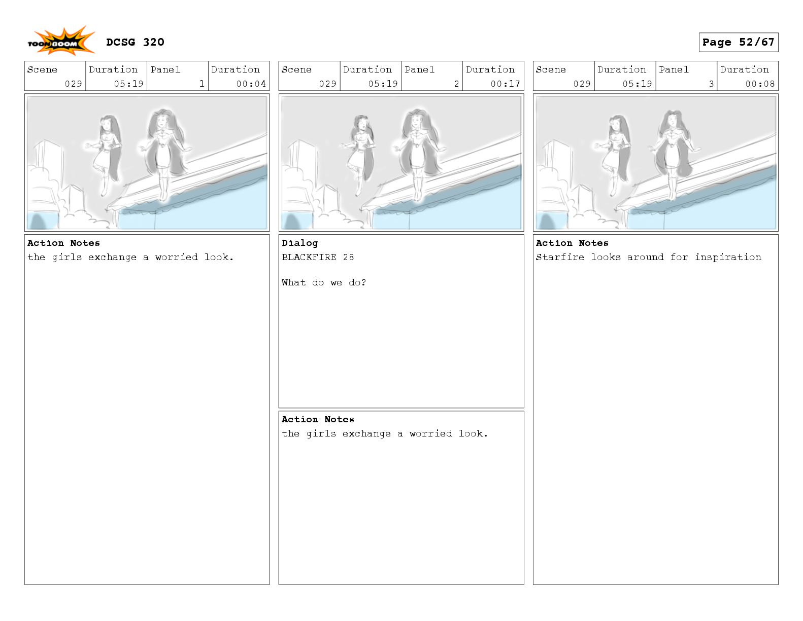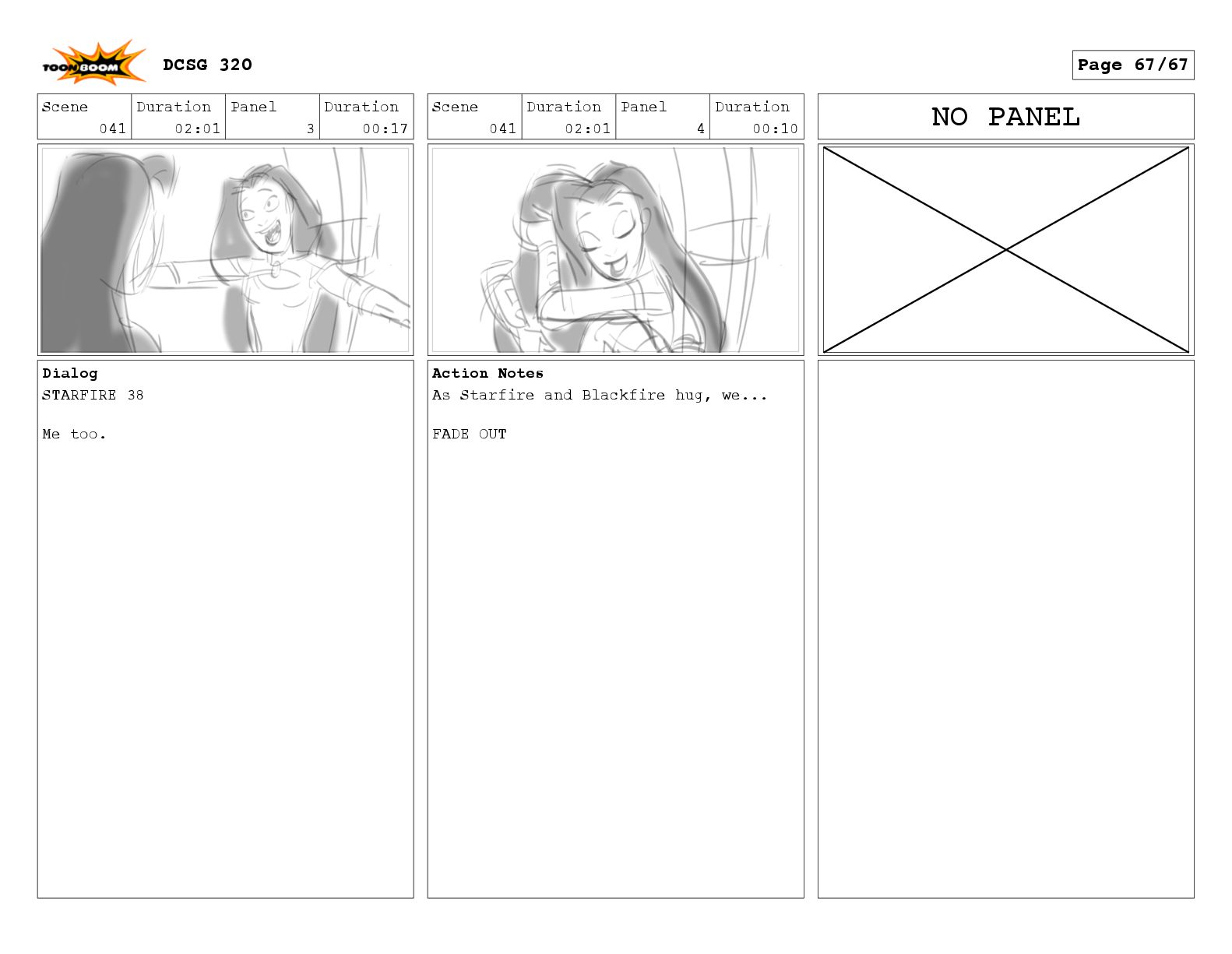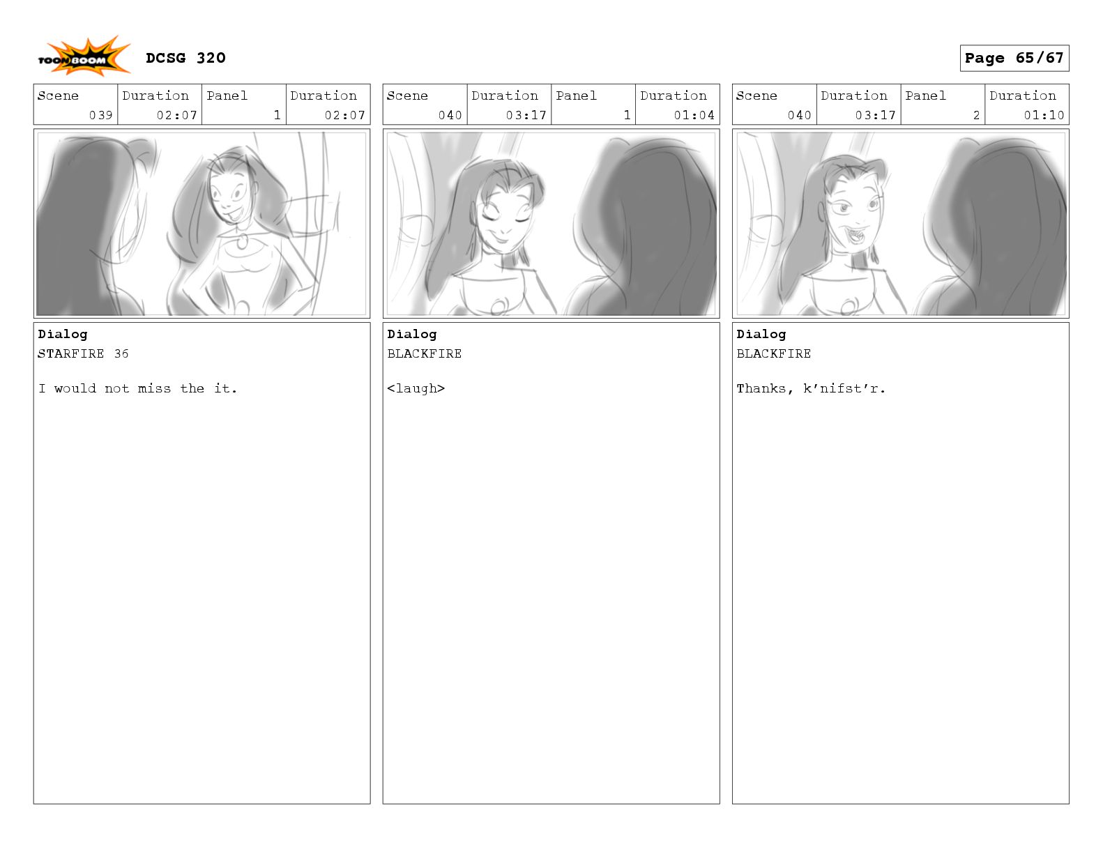 and dumps its contents over Blackfire’s head. SODER COLA cans, water bottles and ice rain down Blackfire. She peeks out from the pile of drinks, looking miserable. Scene 006 Duration 03:02 Panel 5 Duration 00:13 Action Notes and dumps its contents over Blackfire’s head. SODER COLA cans, water bottles and ice rain down Blackfire. She peeks out from the pile of drinks, looking miserable. Scene 006 Duration 03:02 Panel 6 Duration 00:13 Action Notes and dumps its contents over Blackfire’s head. SODER COLA cans, water bottles and ice rain down Blackfire. She peeks out from the pile of drinks, looking miserable. DCSG 320 Page 12/67