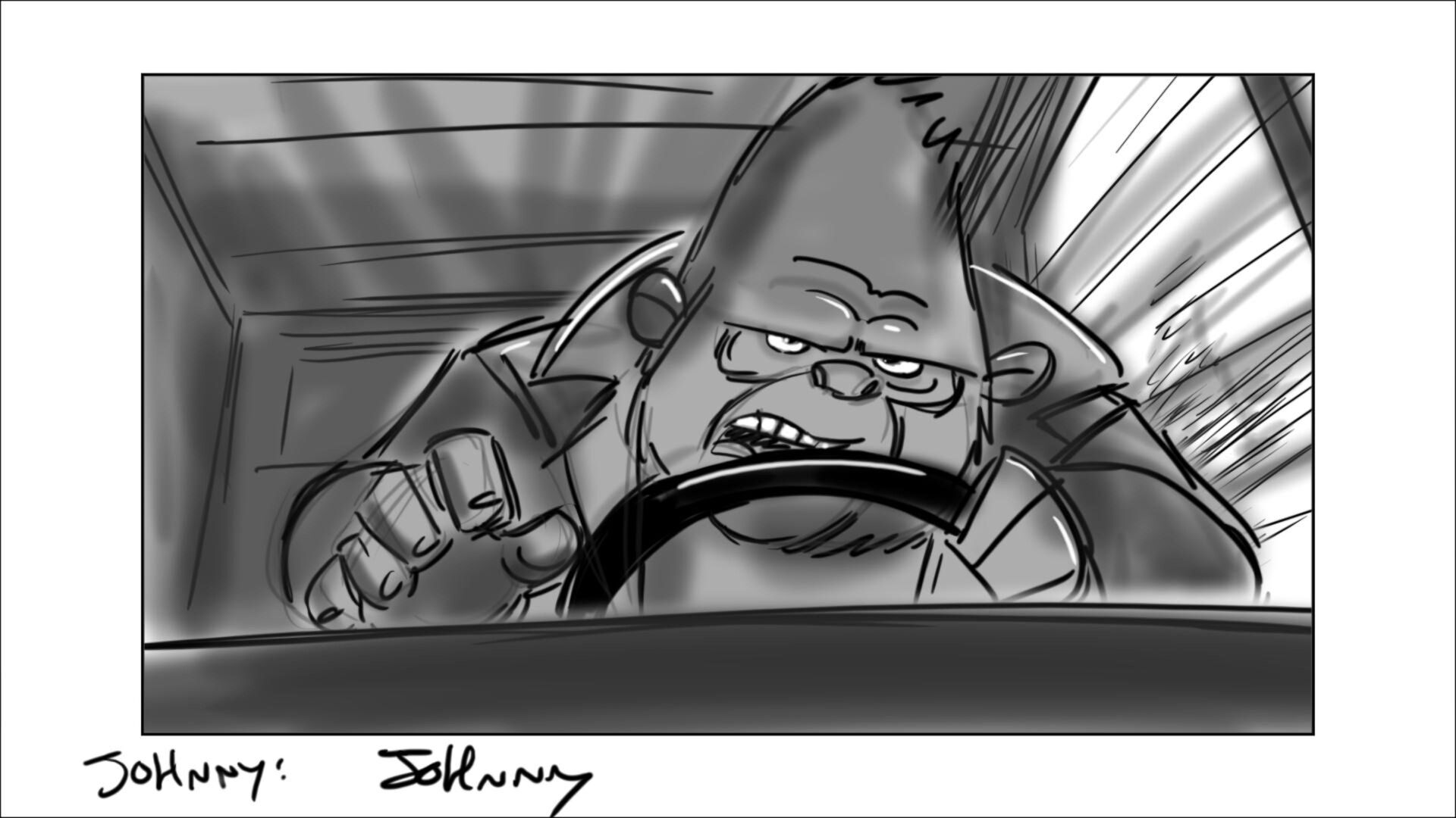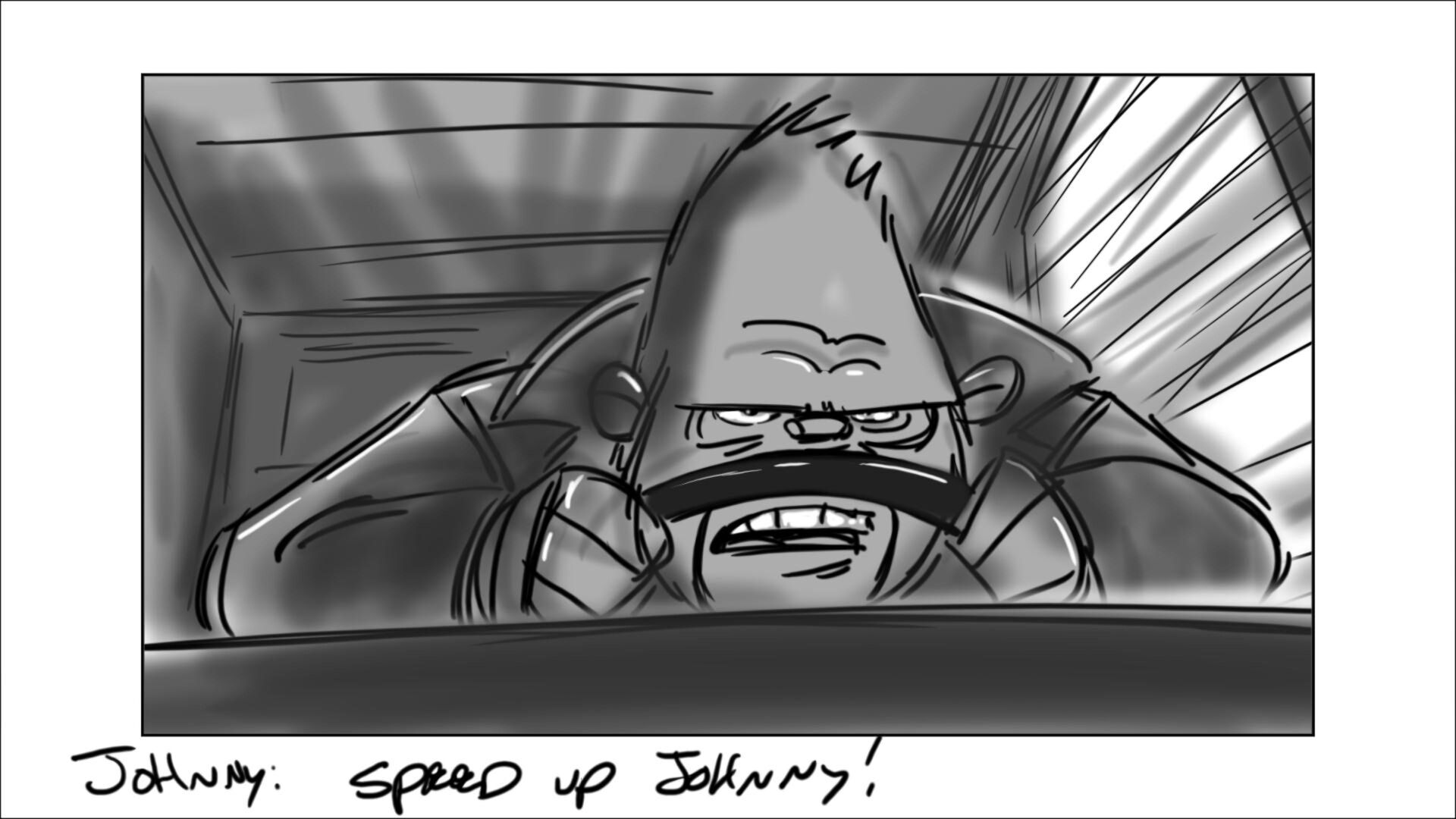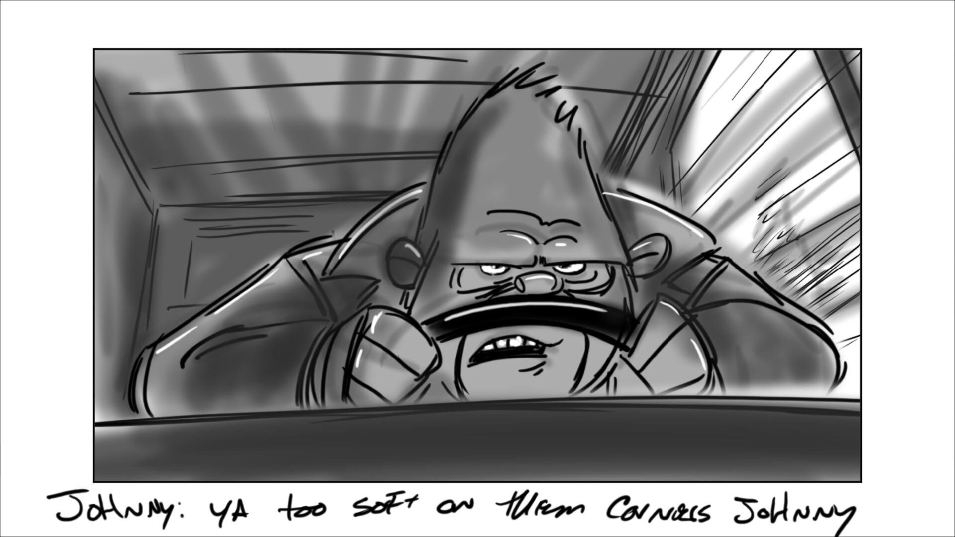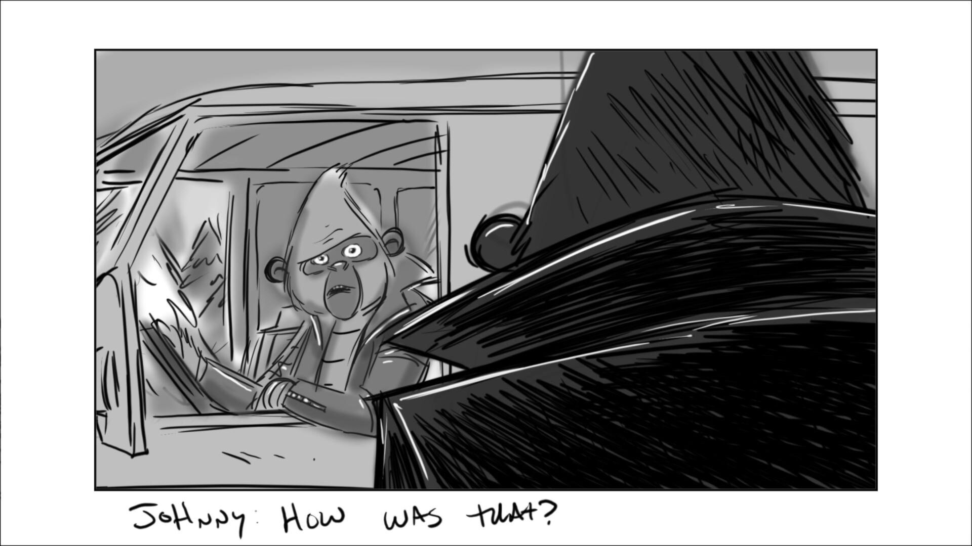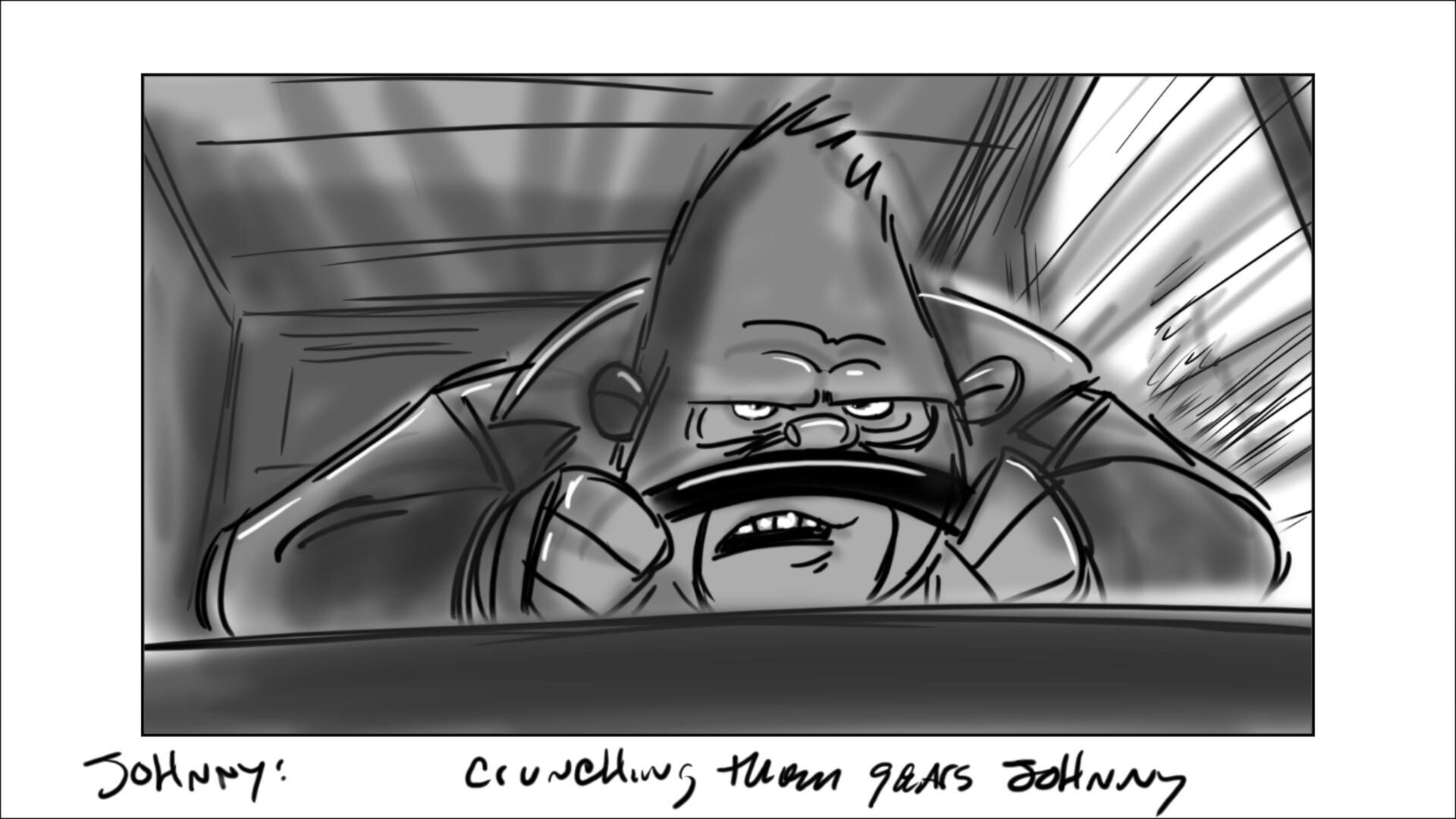 Johnny learns how to drive the getaway car. In the movie, this was done in a city environment. In original script, it was on a dirt track on the outskirts of the city.
