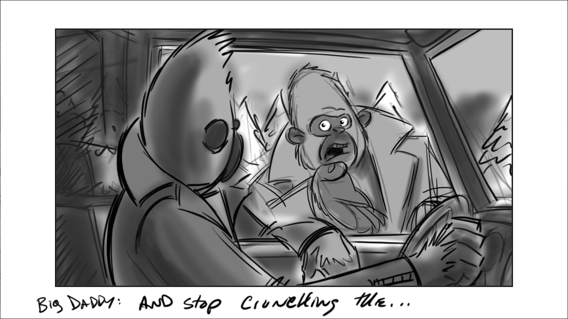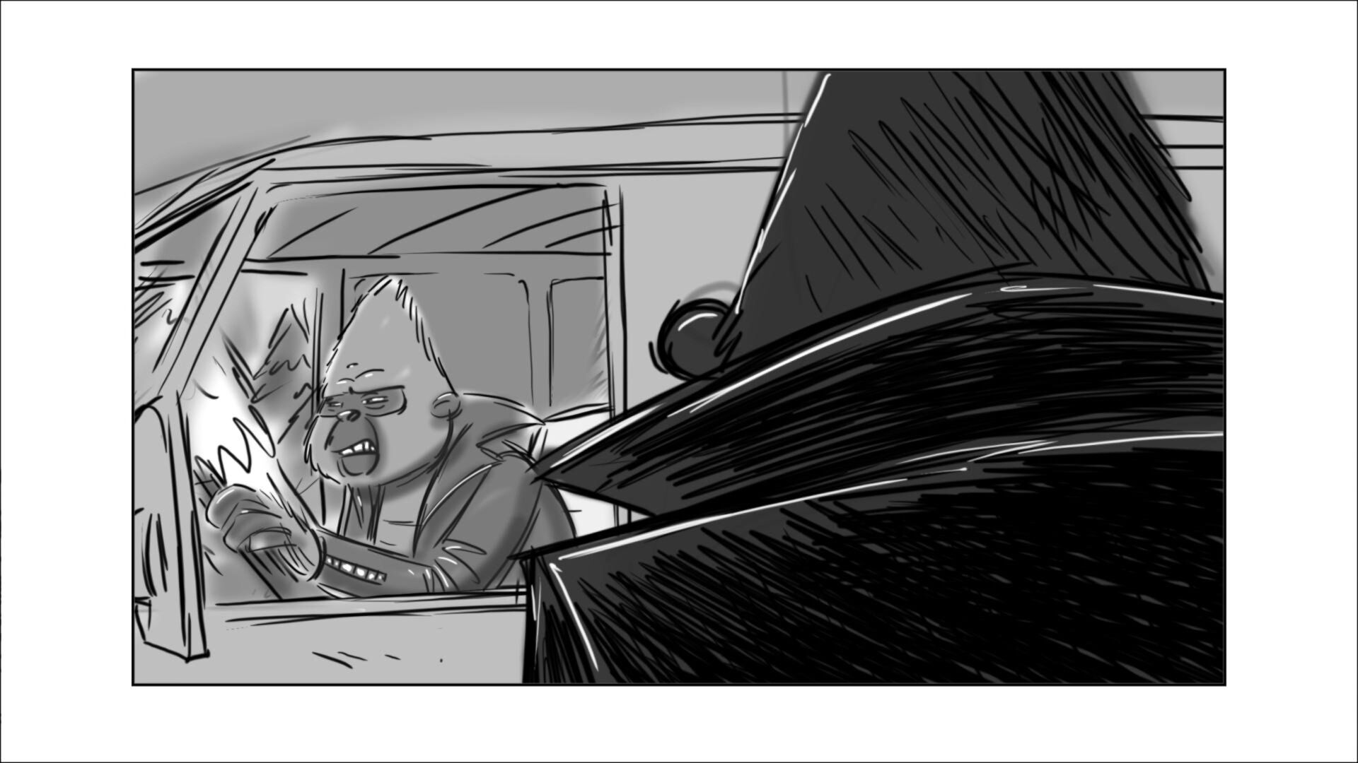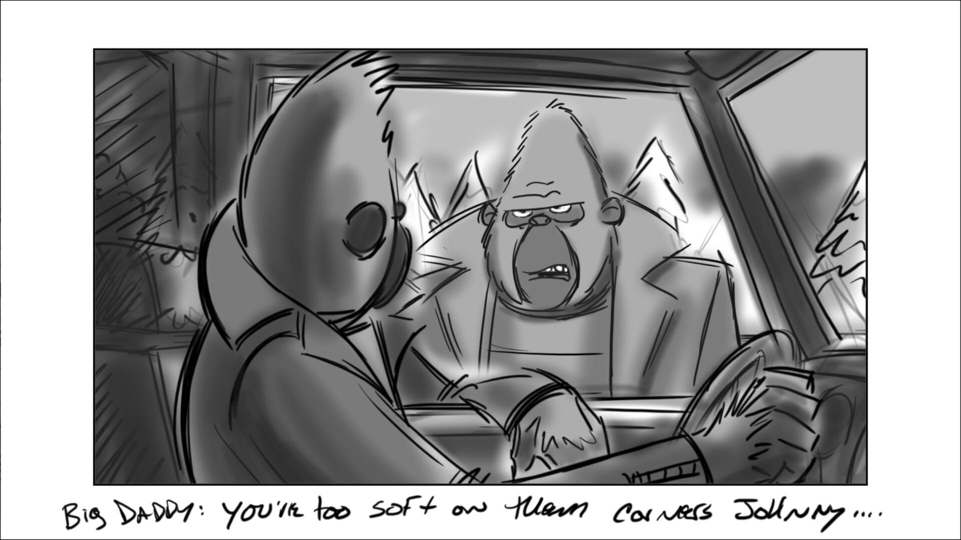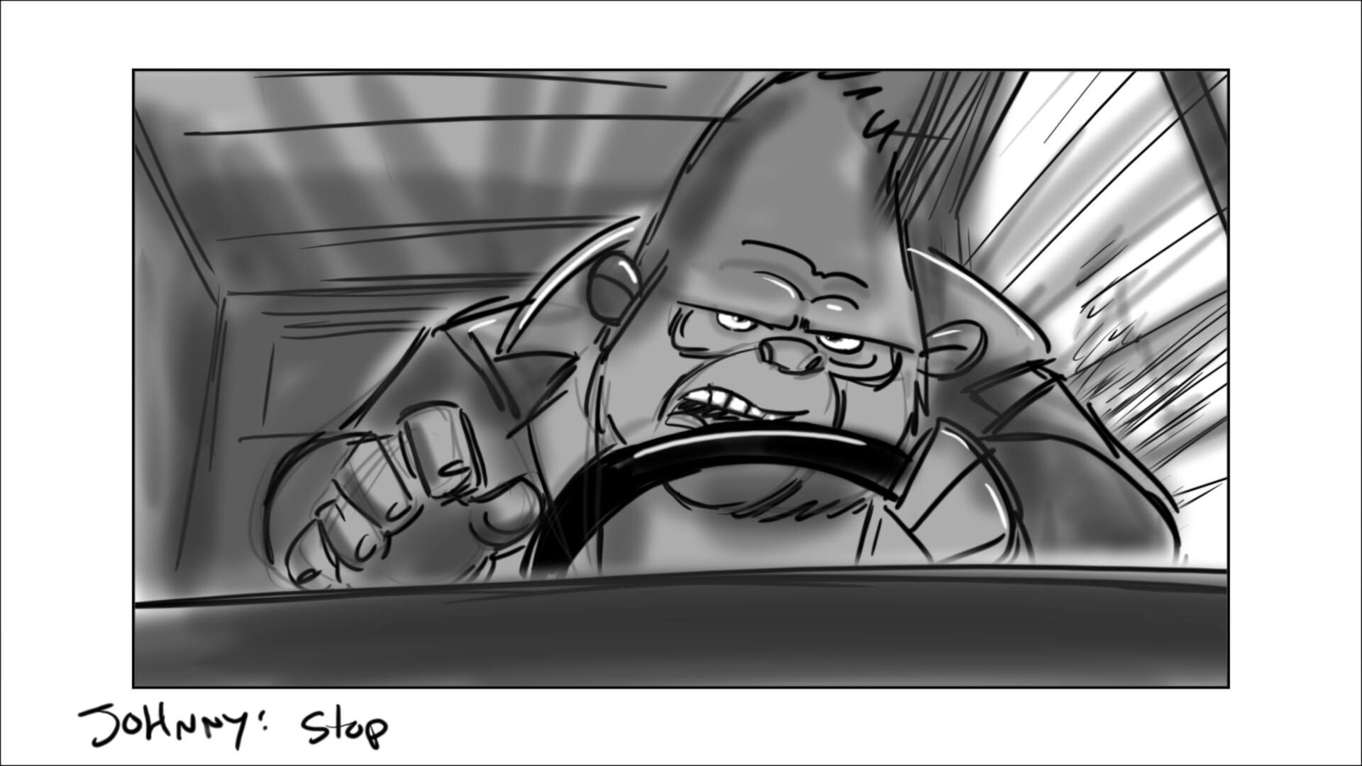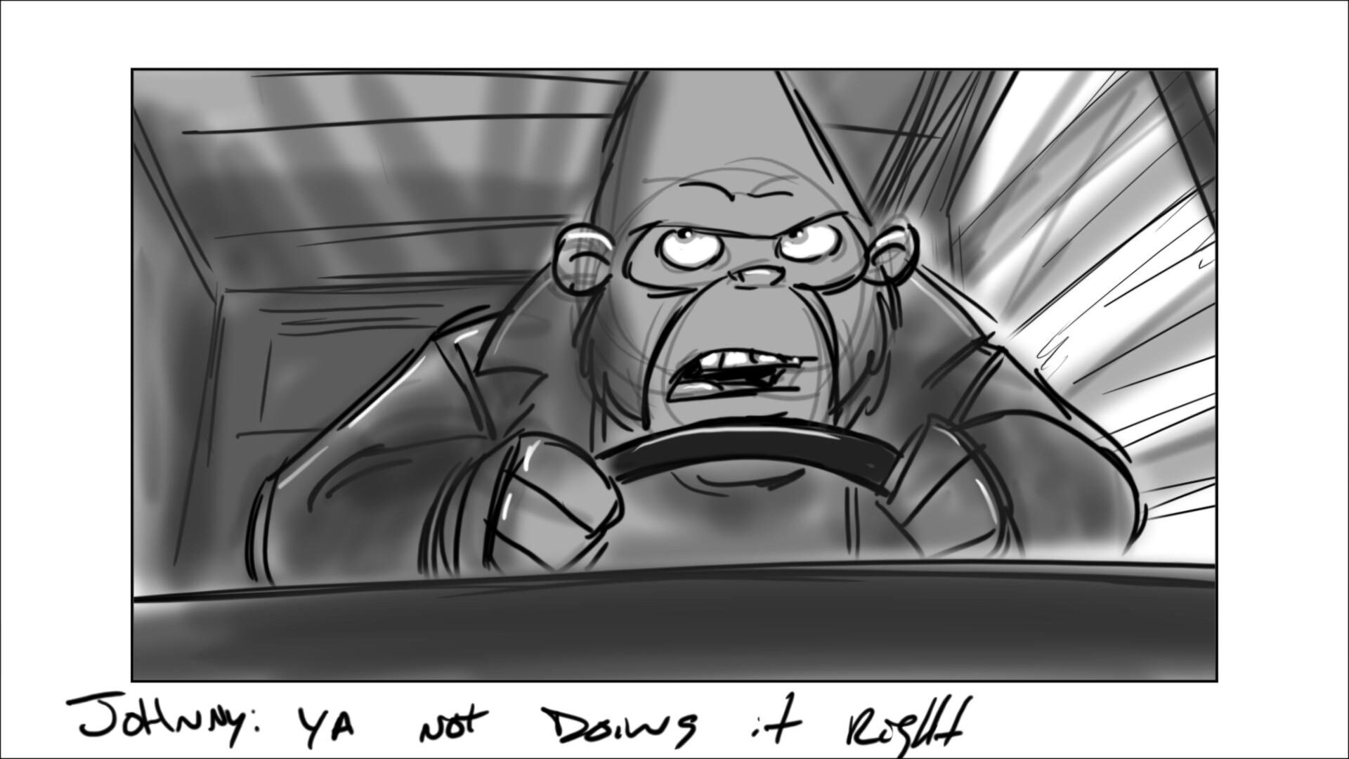 Johnny learns how to drive the getaway car. In the movie, this was done in a city environment. In original script, it was on a dirt track on the outskirts of the city.