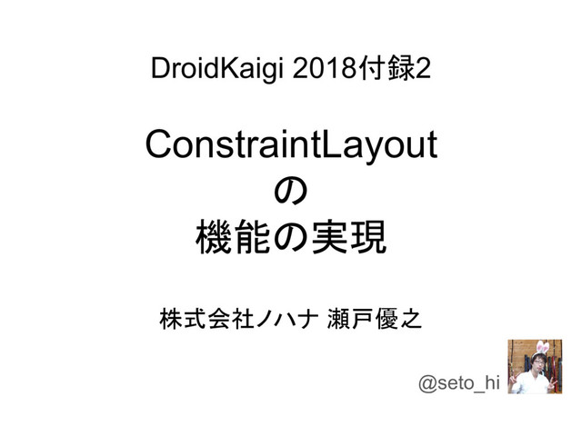 DroidKaigi 2018付録2 ConstraintLayout の 機能の実現 株式会社ノハナ 瀬戸優之 @seto_hi