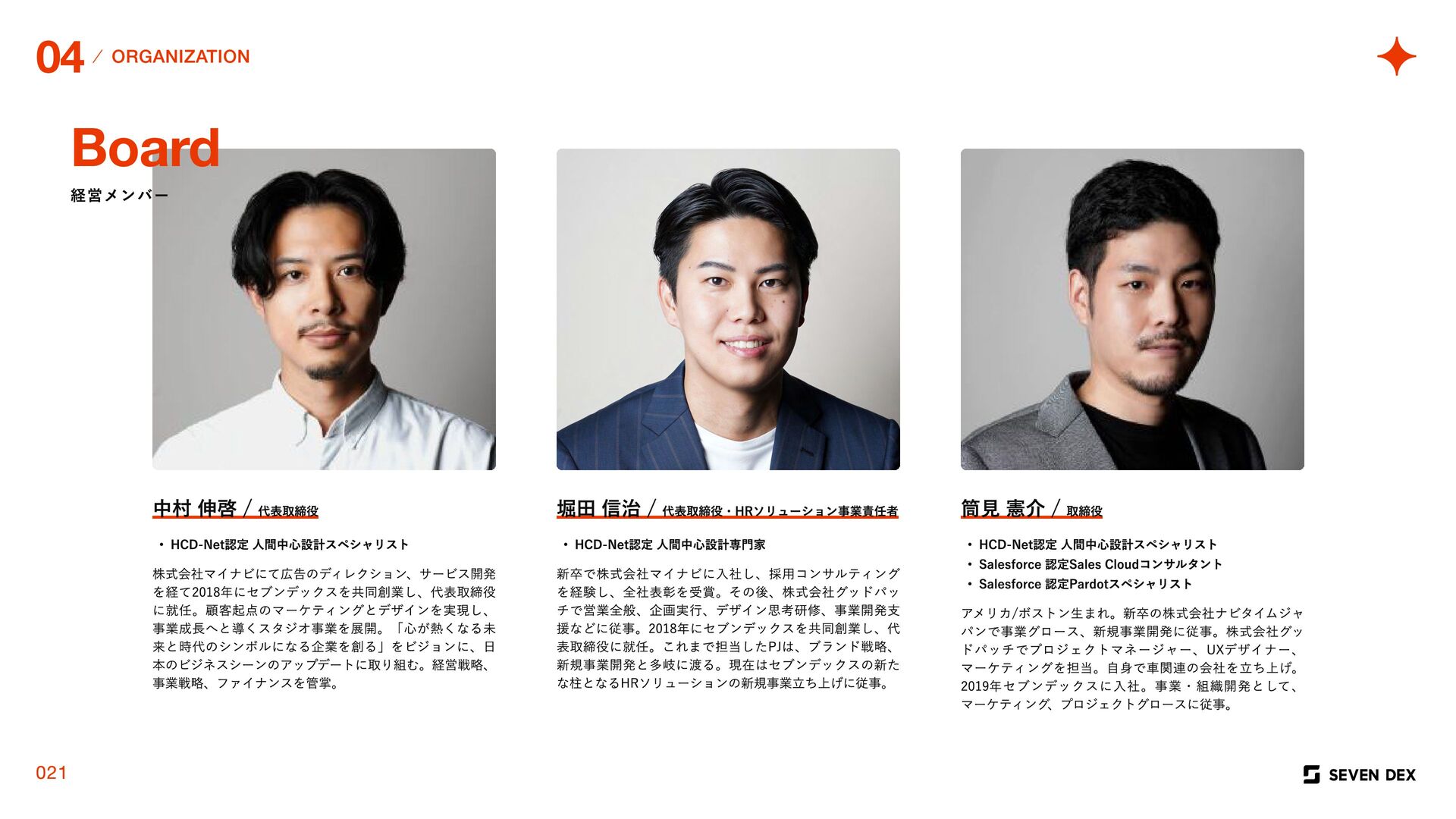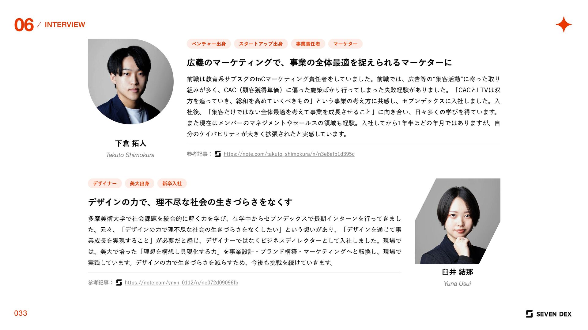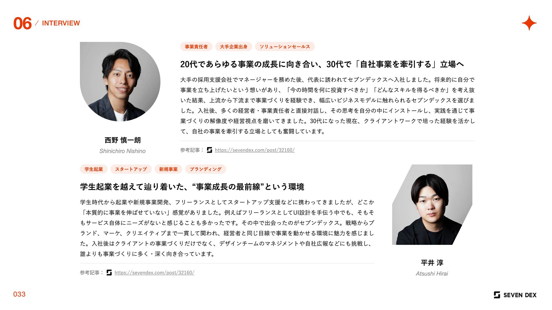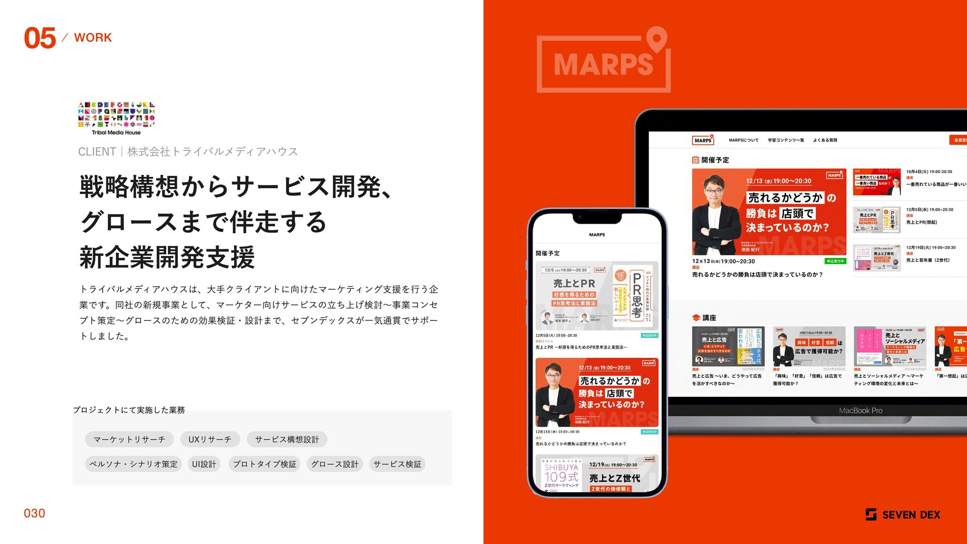 「実現したいサービスの世界」を解像度を高く理解し、お客さまにも「プ ロジェクトを成功させるために抑えるべき要所」をインストール。 「ユーザー起点で考える」「世の中にないものは、ない理由がある」と いった頭の使い方やプロセスを踏みつつ、必要に応じて「このまま進んだ らまずいからやめた方が良い」と明言することで、事業の成功を手繰り寄 せていきます。 組織力学を理解し、 大切な 上申プロセスまでしっかり伴走 Style 03 - 誠実さ・アカウンタビリティ 大企業からス タート アップまで、 企業のルールや 組織構造を理解し、 承認/ 上申プロセスの 設計や 打合せの 段取りな ど徹底した 下準備を 行います。 その 上で、 初期の デスク リサー チから アウトプ ット 制作まで、 精度の高く 組み 上げたロジ ックを、 忖度なく、 誠実さを 持って 意思決定者に 提示。お 客さま xの 社内推進のみでは実 行が 困難な ソリュー ションも、実現 へ導くこ とができるのが、 弊社の 介在価値です。 未来を 示すリ ーダーシップ と統合的なソリ ューション力で、 “未来の実現 に向けた道筋”を 示す 顧客の 想いや課題に徹底し て向き合い、 顧客とワンチームとなっ て事業 課題を 突破し ていきま す。