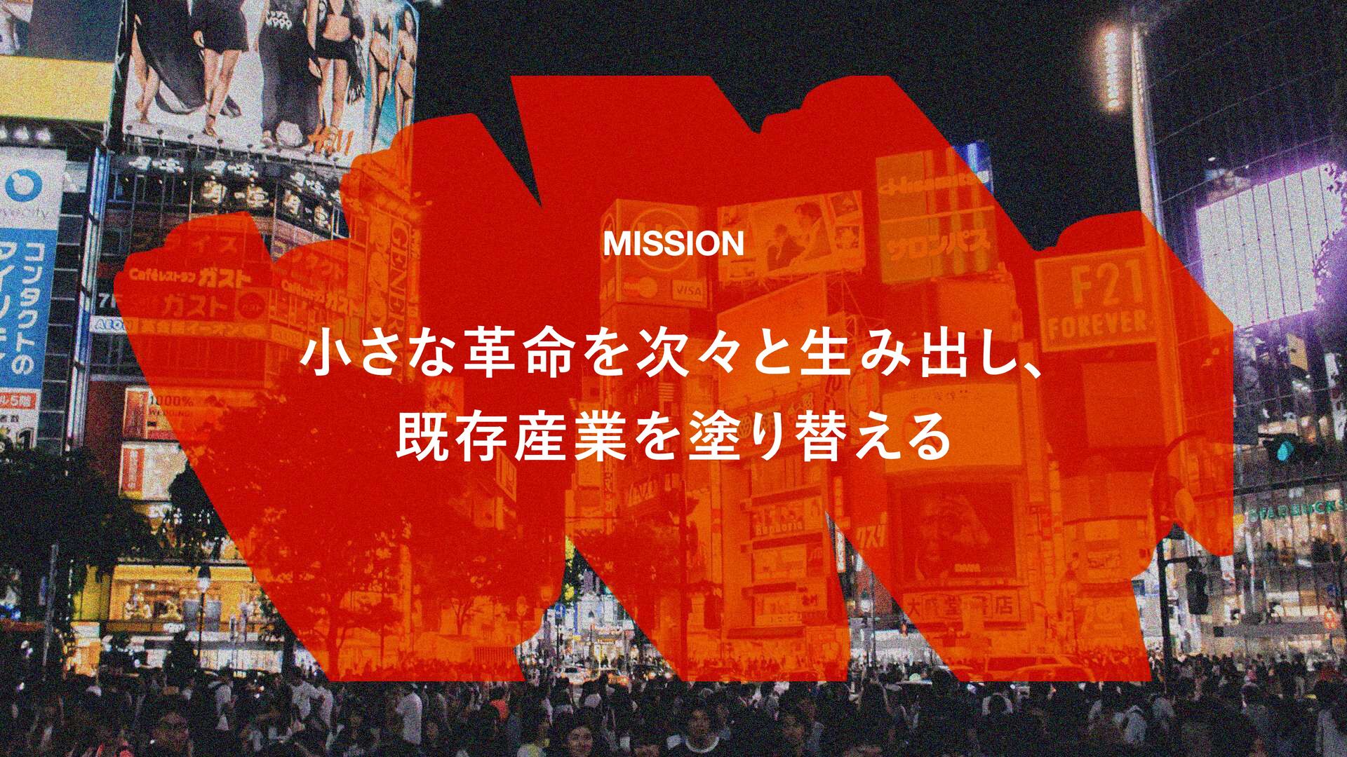 こと。「小さな革命を次々と生み出し、日本のシーンを沸き起こす」と いう当社のパーパスを志します。 社会に熱狂を生み出す企業をつくる!