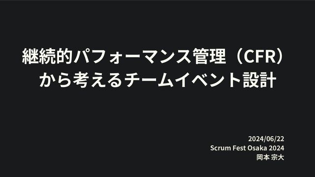 継続的パフォーマンス管理(CFR) から考えるチームイベント設計 2024/06/22 Scrum Fest Osaka 2024 岡本 宗⼤