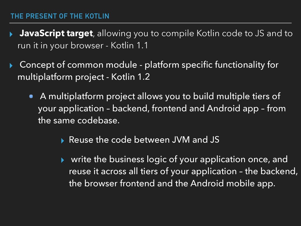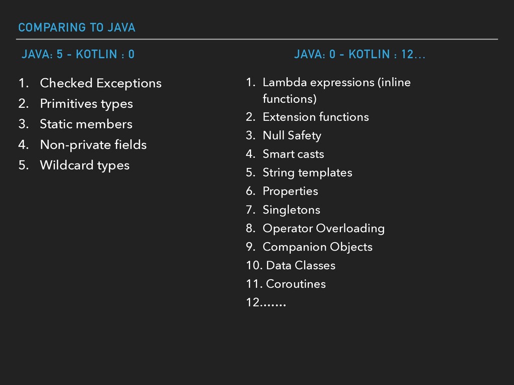 Kotlin is a statically typed programming language for modern multi-platform applications and it’s 100% interoperable with Java. In this presentation, I will talk about the pros and cons of Kotlin from a general aspect, focusing on five Ws: Who, What, Why, When, How. The presentation will end with code samples to show the strength of Kotlin.