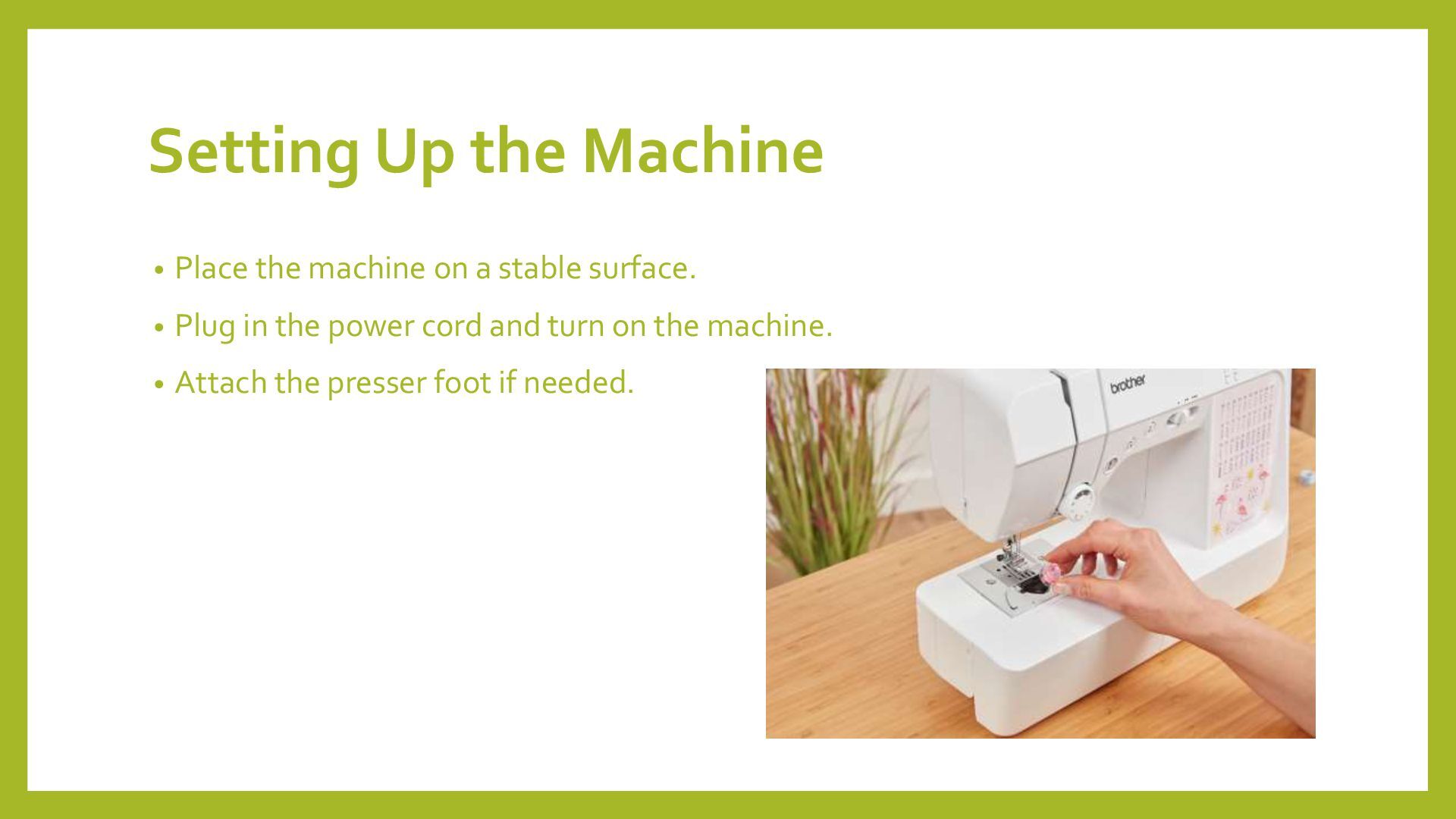 This guide provides a step-by-step tutorial on how to use a Brother Sewing Machine effectively. It covers everything from setting up the machine, winding and inserting the bobbin, threading the upper thread, and selecting the right stitch. You will also learn how to start sewing, troubleshoot common issues, and finish your stitches properly. With easy-to-follow instructions, this guide ensures a smooth sewing experience, helping you create professional-quality stitches. Whether you are a beginner or an experienced sewist, mastering your Brother Sewing Machine has never been easier!