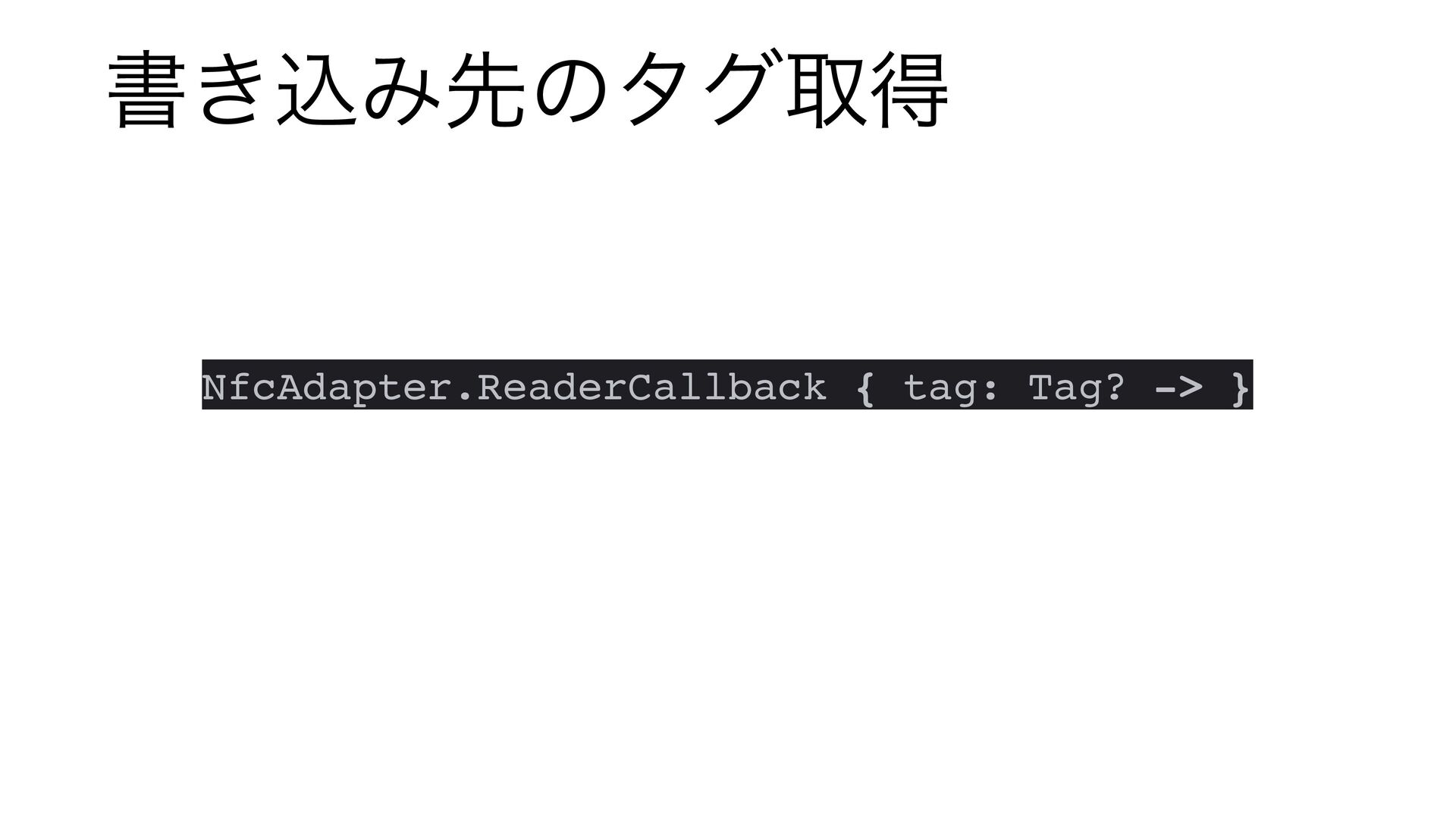 ॻ͖ࠐΈઌͷλάऔಘ NfcAdapter.ReaderCallback { tag: Tag? -> }