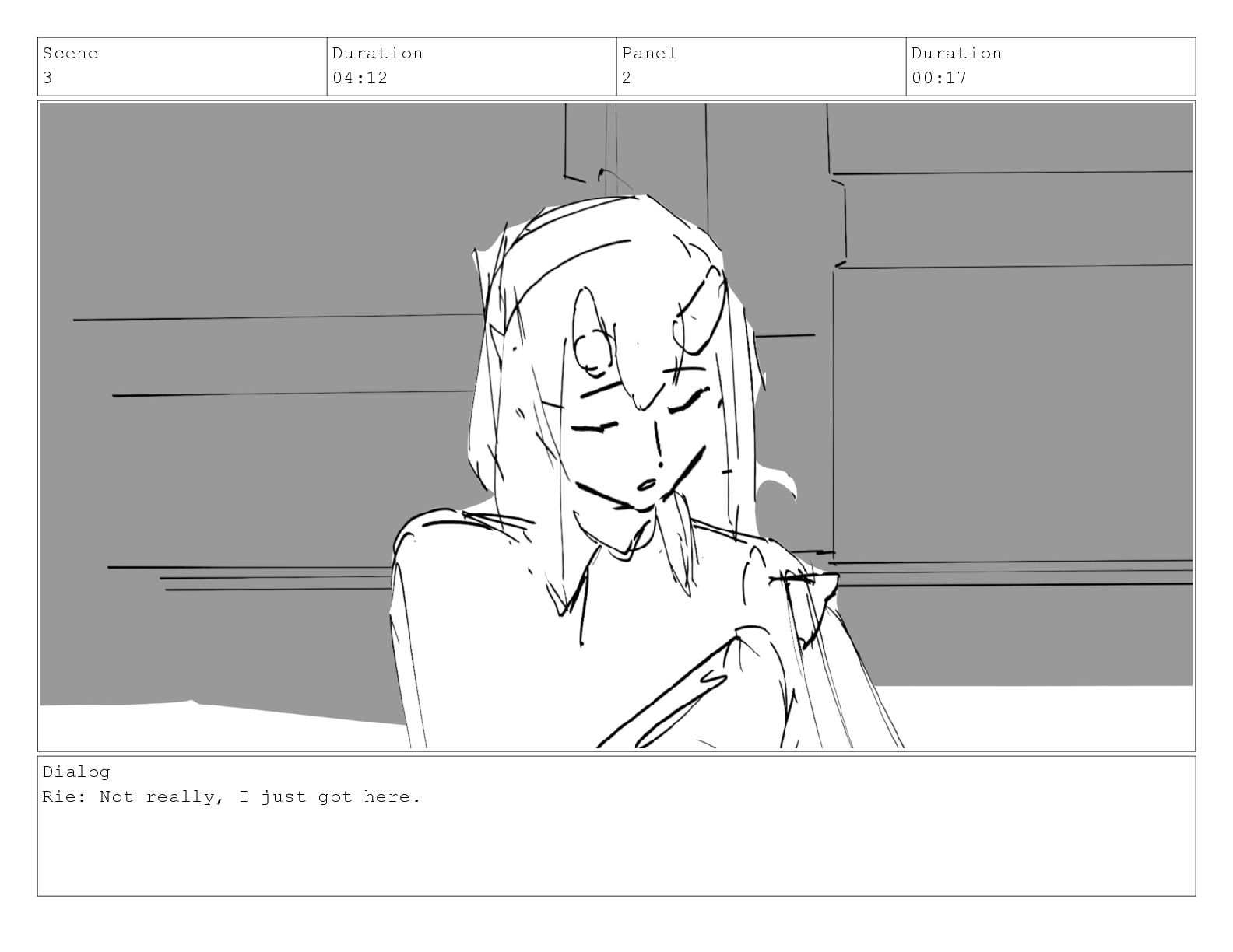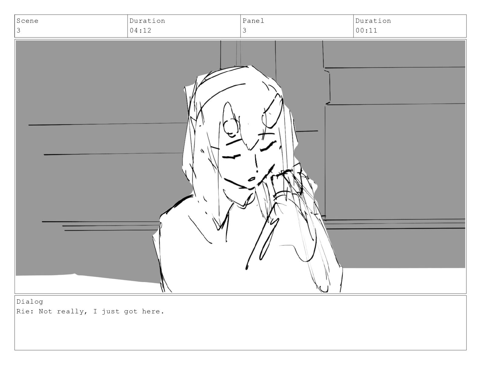 Scene 3 Duration 04:12 Panel 3 Duration 00:11 Dialog Rie: