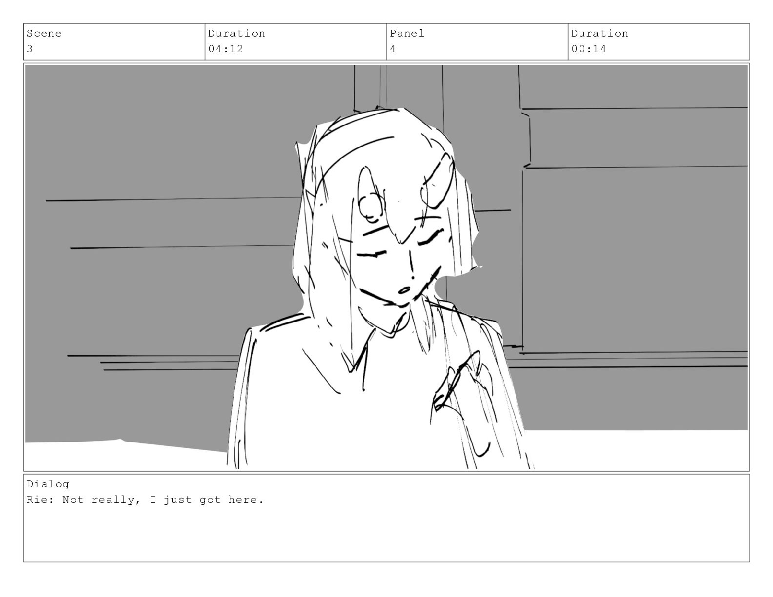 Scene 3 Duration 04:12 Panel 4 Duration 00:14 Dialog Rie:
