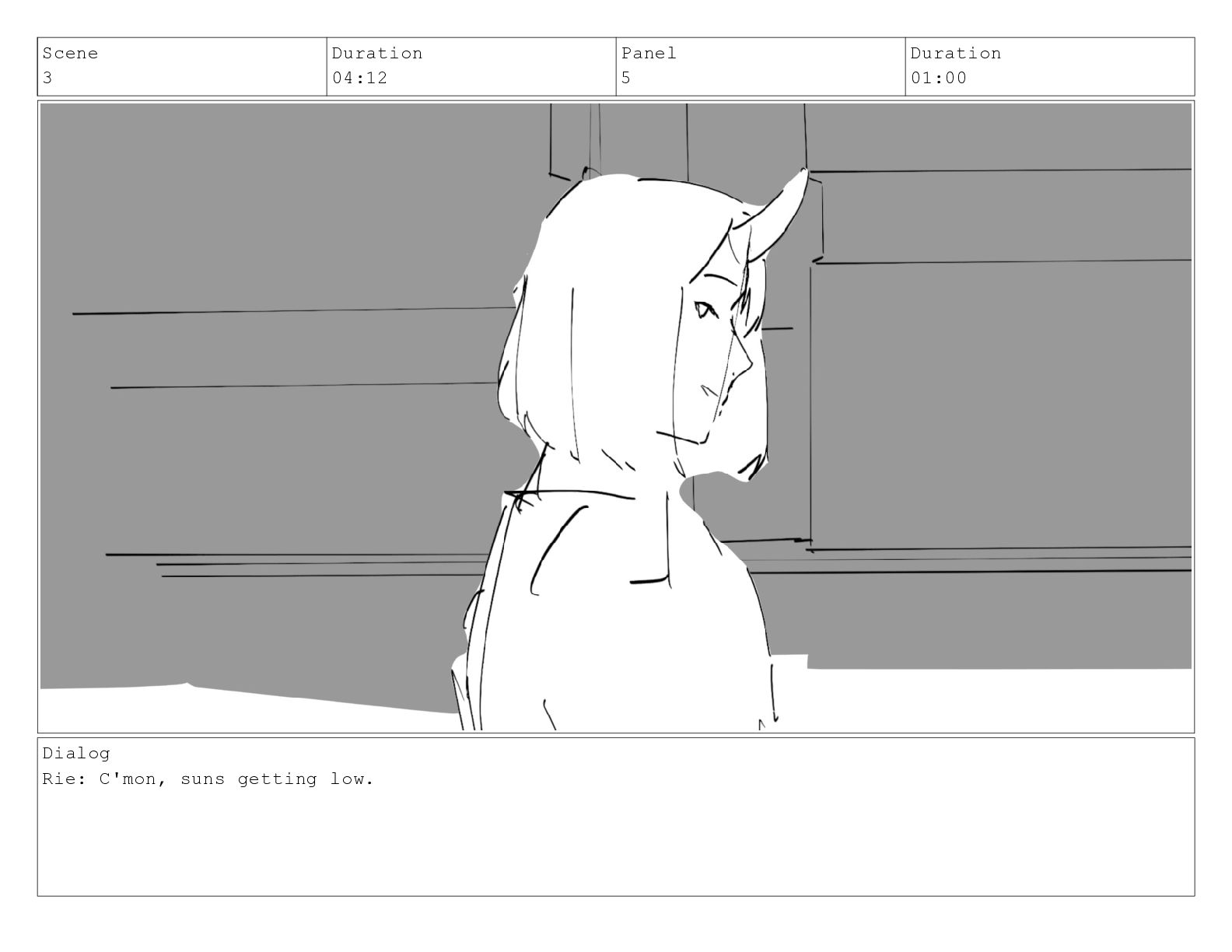 Scene 3 Duration 04:12 Panel 5 Duration 01:00 Dialog Rie: