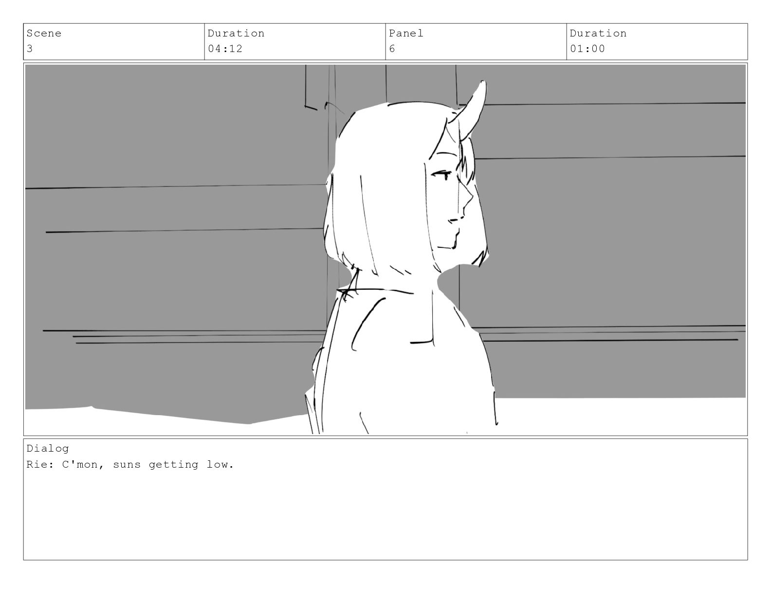 Scene 3 Duration 04:12 Panel 6 Duration 01:00 Dialog Rie: