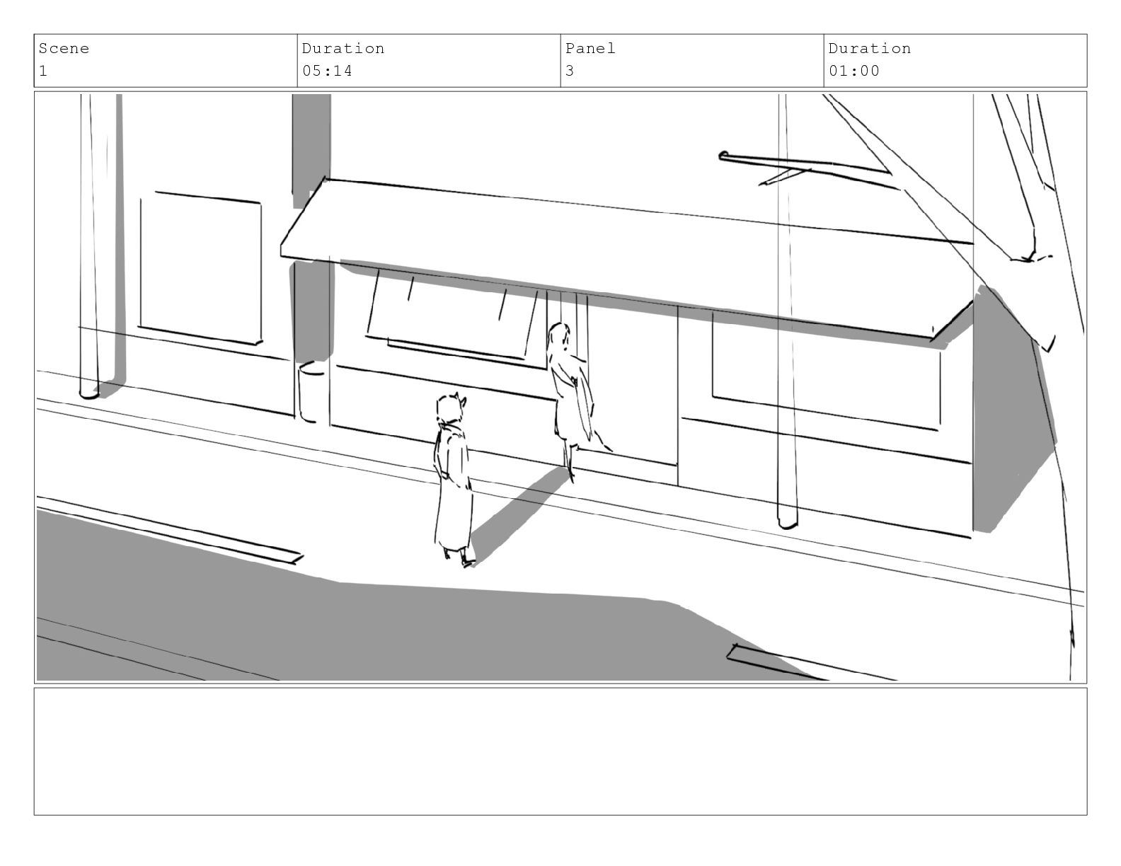 Scene 1 Duration 05:14 Panel 3 Duration 01:00