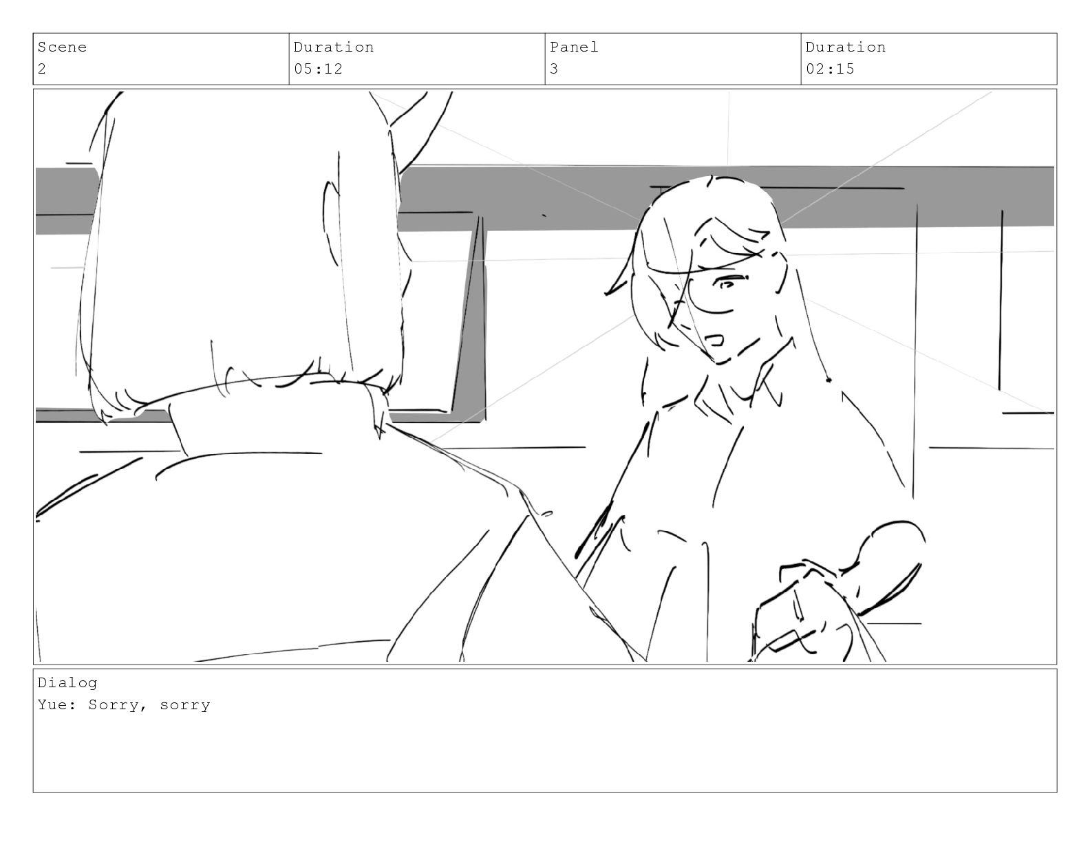 Scene 2 Duration 05:12 Panel 3 Duration 02:15 Dialog Yue:
