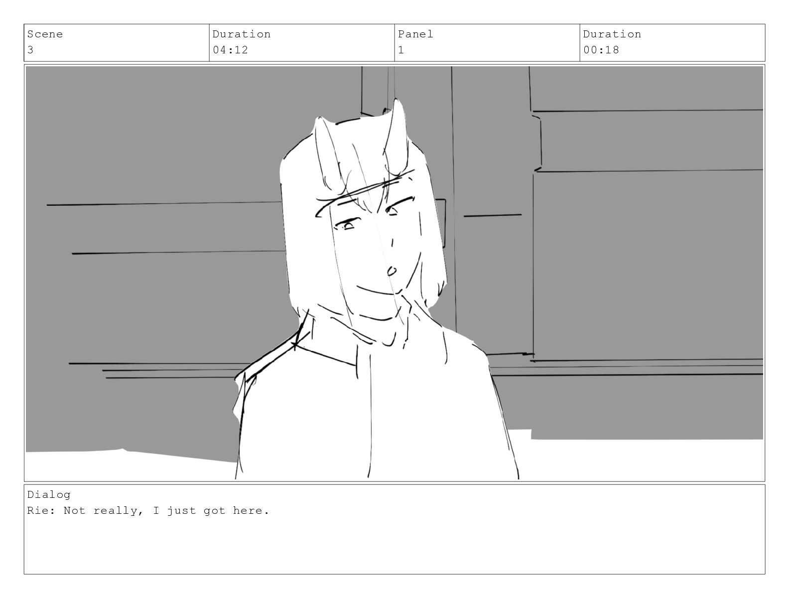 Scene 3 Duration 04:12 Panel 1 Duration 00:18 Dialog Rie: