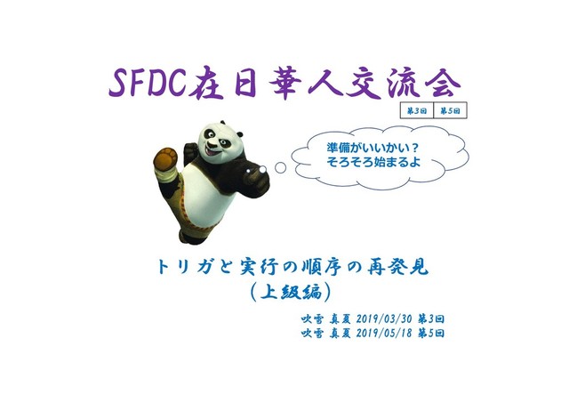 SFDC在日華人交流会 トリガと実行の順序の再発見 (上級編) 吹雪 真夏 2019/03/30 第3回 吹雪 真夏 2019/05/18