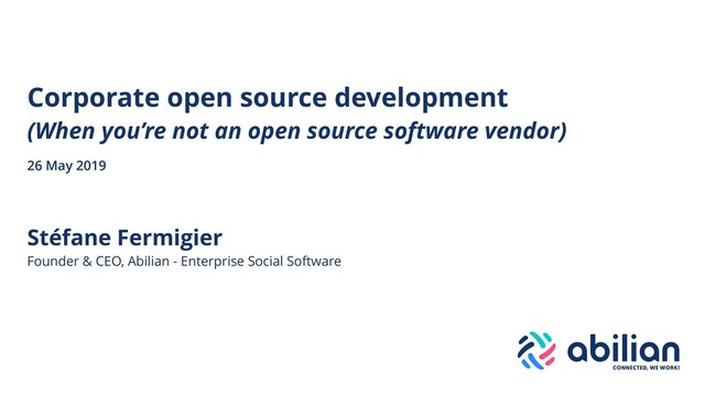 Source user since 1988 • Linux user since 1991 • Python developer since 1996 • PyData Paris / PyParis founder / (co)organiser (2014-2018) • Co-founded AFUL, EuroLinux Alliance, GTLL, CNLL • Founded 3 companies: Linbox (1999), Nuxeo (2000), Abilian (2013) • Launched a few open source projects: Nuxeo CPS, Nuxeo EP, Apache Stanbol, Apache Chemistry, Eclipse Apricot, Abilian SBE, OlaPy… • “Expert” in open source R&D projects evaluation