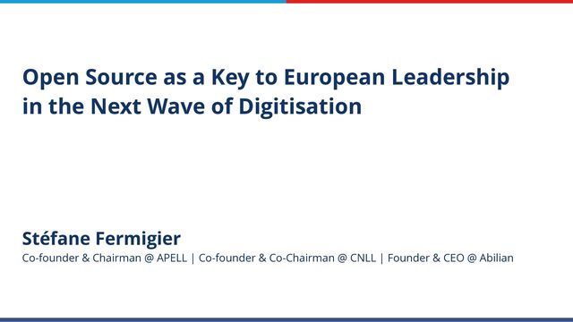 in October 2020 its “think open" plan which aims to "develop software solutions, [taking] into account openness, sharing and reuse, security, privacy, legal issues and accessibility". • But this plan, whose quality and intentions we welcome, is nonetheless limited to the internal IT of the EU institutions, and insu ff i cient for the current challenges. • We believe it must be coordinated with a real economic policy aiming to develop European open source software publishers and integrators, and to support them against the in fl uence of foreign software and cloud players https://ec.europa.eu/info/departments/informatics/open-source-software-strategy_en