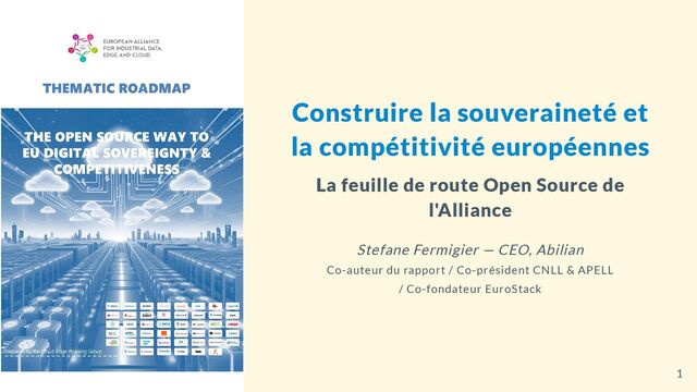 le "sovereign washing" — propositions et travaux en cours au sein de: l'Alliance, EuroStack, la Commission, CSF Numérique de Confiance, axe Paris-Berlin, etc. Critère Exigence L - Légal Immunité aux lois extra-européennes (FISA, CLOUD Act). Juridiction UE. O - Opérationnel Opérations contrôlées par du personnel européen, en Europe. T - Technologique Open Source, standards ouverts, interopérabilité, réversibilité. E - Économique Création de valeur en Europe (R&D, emplois). Modèle équitable. C - Culturel Nos valeurs, nos compétences et notre voix sont-elles respectées ? Sans critères objectifs, "souverain" ne veut rien dire. 8
