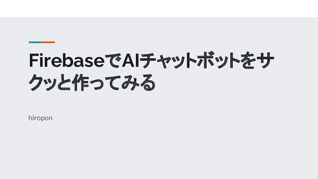 LLMのはじめの一歩はFirebaseを活用した定番のAIチャットボット開発をおすすめします。 FirebaseにはLLMを扱うための機能が豊富に用意されているので、想像以上に簡単にAIチャットボットを作成できます。 今回の勉強会では、FirebaseとLLMの相性の良さをご紹介し、みなさんのLLM活用のはじめの一歩をサポートできればと思います。