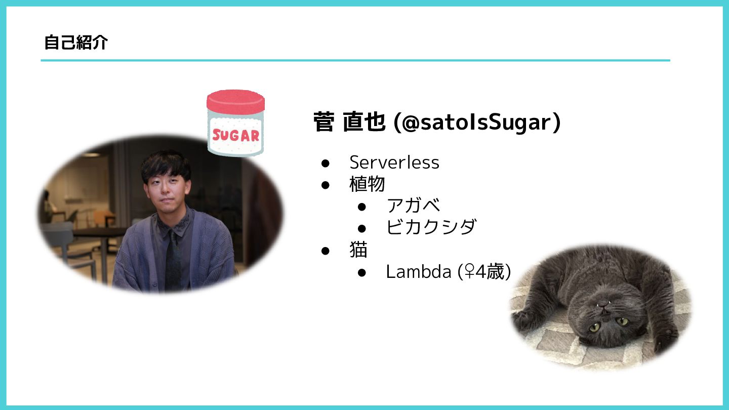 自己紹介 菅 直也 (@satoIsSugar) • Serverless • 植物 • アガベ