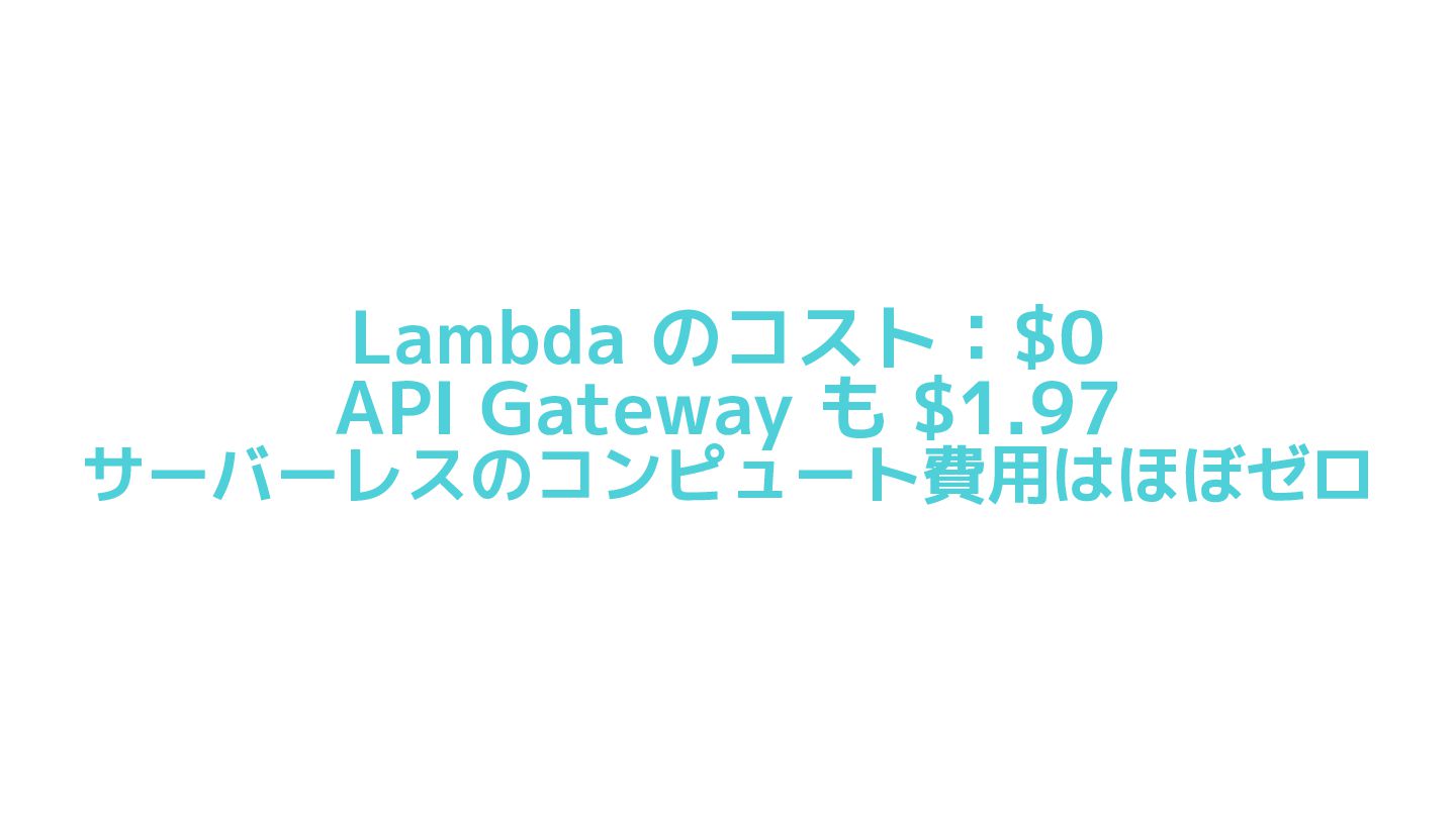 Lambda のコスト:$0 API Gateway も $1.97 サーバーレスのコンピュート費用はほぼゼロ