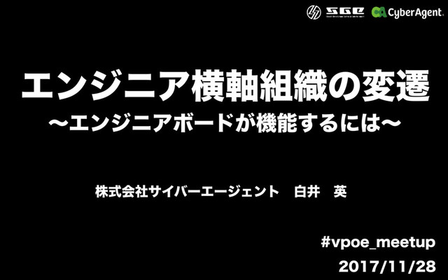 VP of Engineer Meetup By CA のイベントで発表した資料です 「エンジニア横軸組織の変遷 ~エンジニアボードが機能するには~」 というタイトルで弊社ゲーム事業のエンジニアボード の歴史から、エンジニアボードとして組織の目指す方向についてどう関わっていくかを発表させていただきました。
