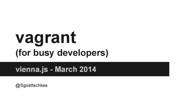 This talk was given at vienna.js in March 2014. It introduces the audience to the concept of vagrant, describing the terminology and doing a demo on how to initialize, boot and ssh into a vagrant box with three simple commands.