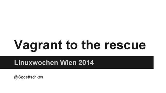 In this talk, an introduction to vagrant is given. The audience is made aware of current problems with local development environments and how vagrant solves them. The different parts of vagrant are described and some use cases are presented. The presentation closes with answering some common questions from users starting to use vagrant.