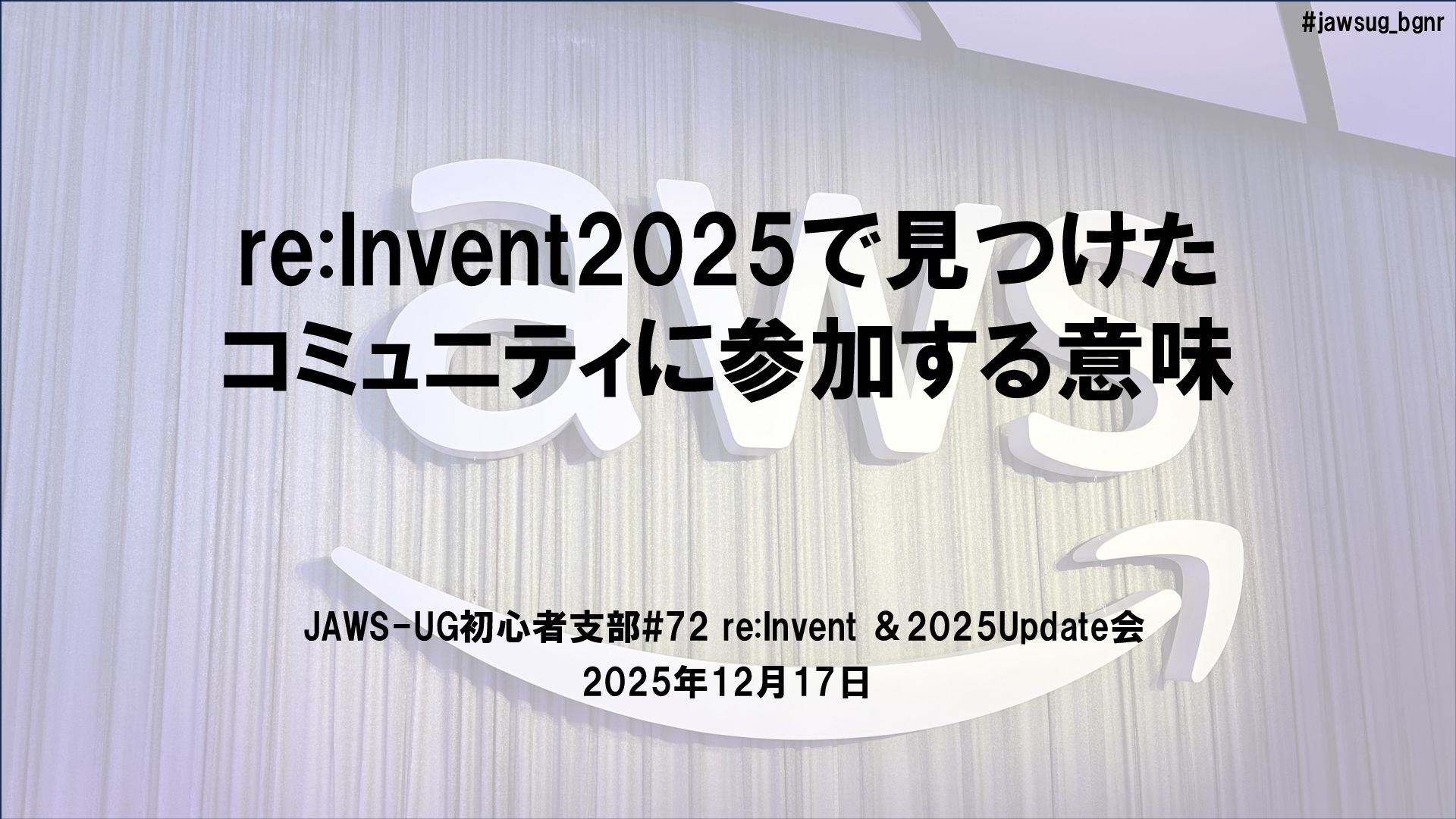 2025年12月17日 JAWS-UG初心者支部#72 re:Invent &2025Update会 re:Invent2025で見つけた コミュニティに参加する意味 #jawsug_bgnr