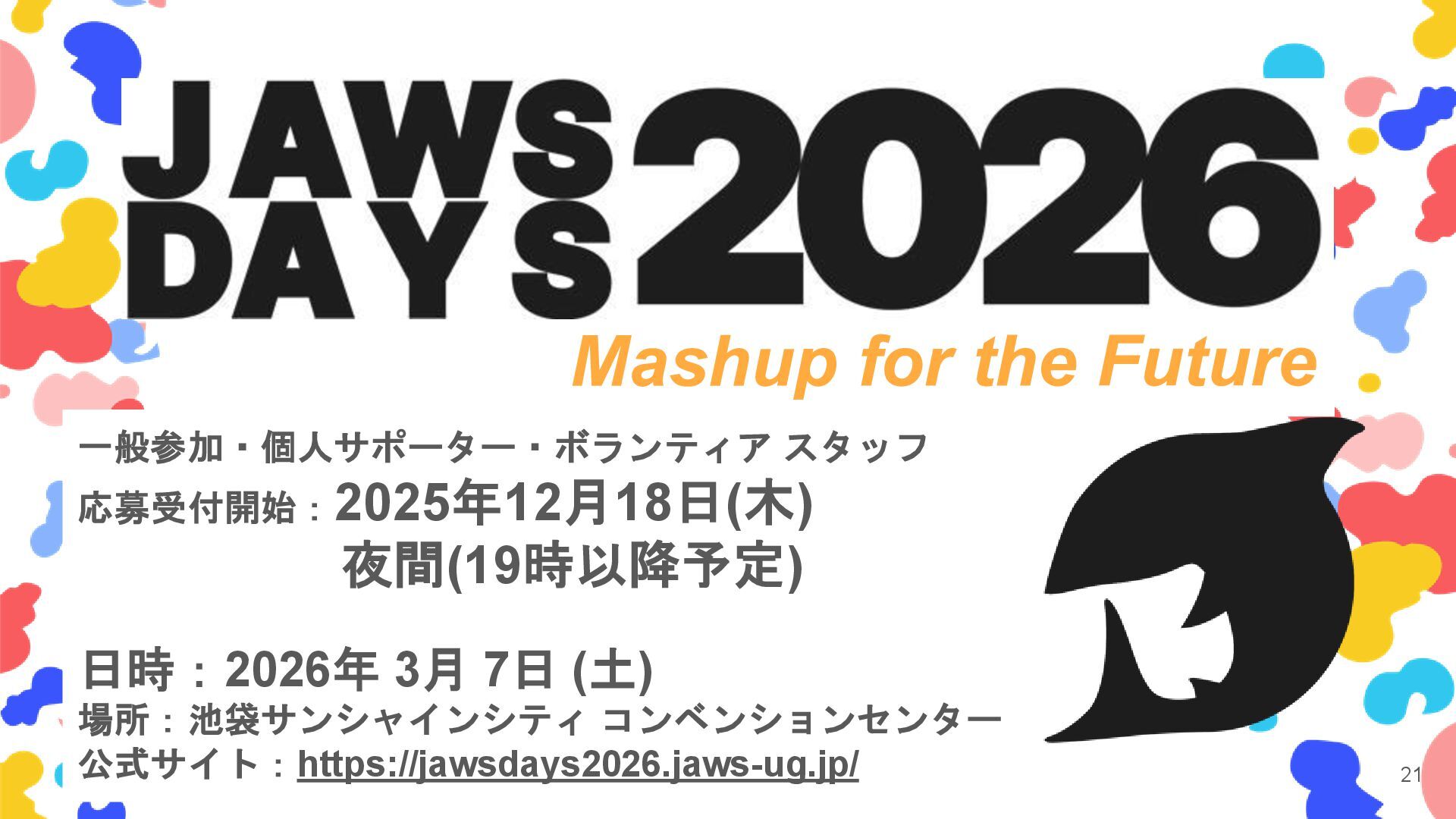 公式サイト:https://jawsdays2026.jaws-ug.jp/ 21