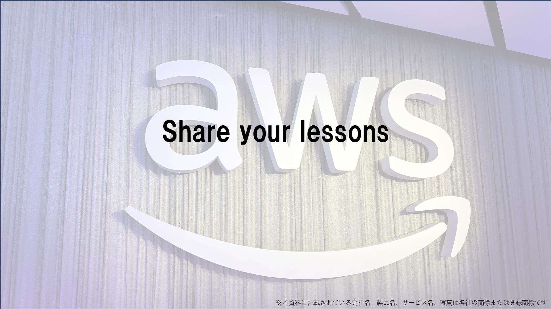 ※本資料に記載されている会社名、製品名、サービス名、写真は各社の商標または登録商標です Share your lessons