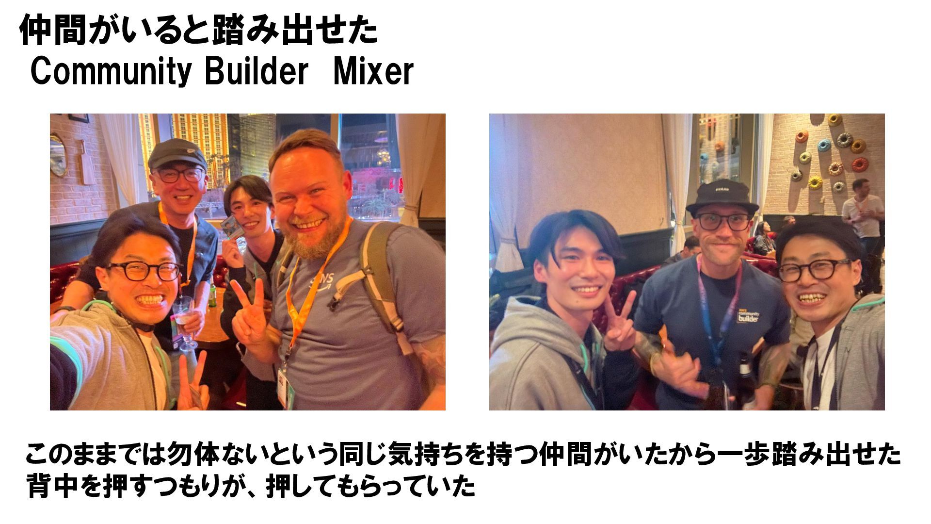 仲間がいると踏み出せた Community Builder Mixer このままでは勿体ないという同じ気持ちを持つ仲間がいたから一歩踏み出せた 背中を押すつもりが、押してもらっていた