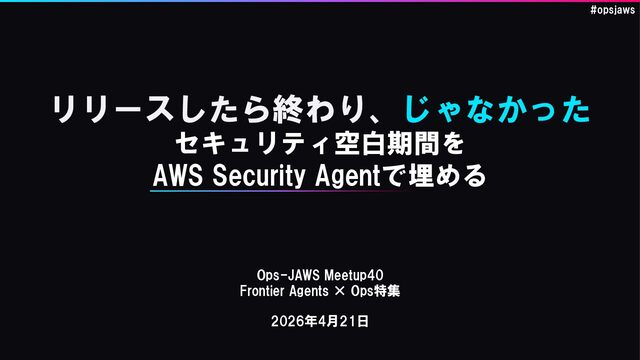 リリースしたら終わり、じゃなかった セキュリティ空白期間を AWS Security Agentで埋める 2026年4月21日 Ops-JAWS Meetup40 Frontier Agents