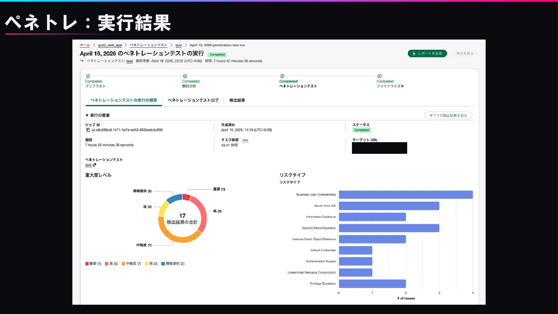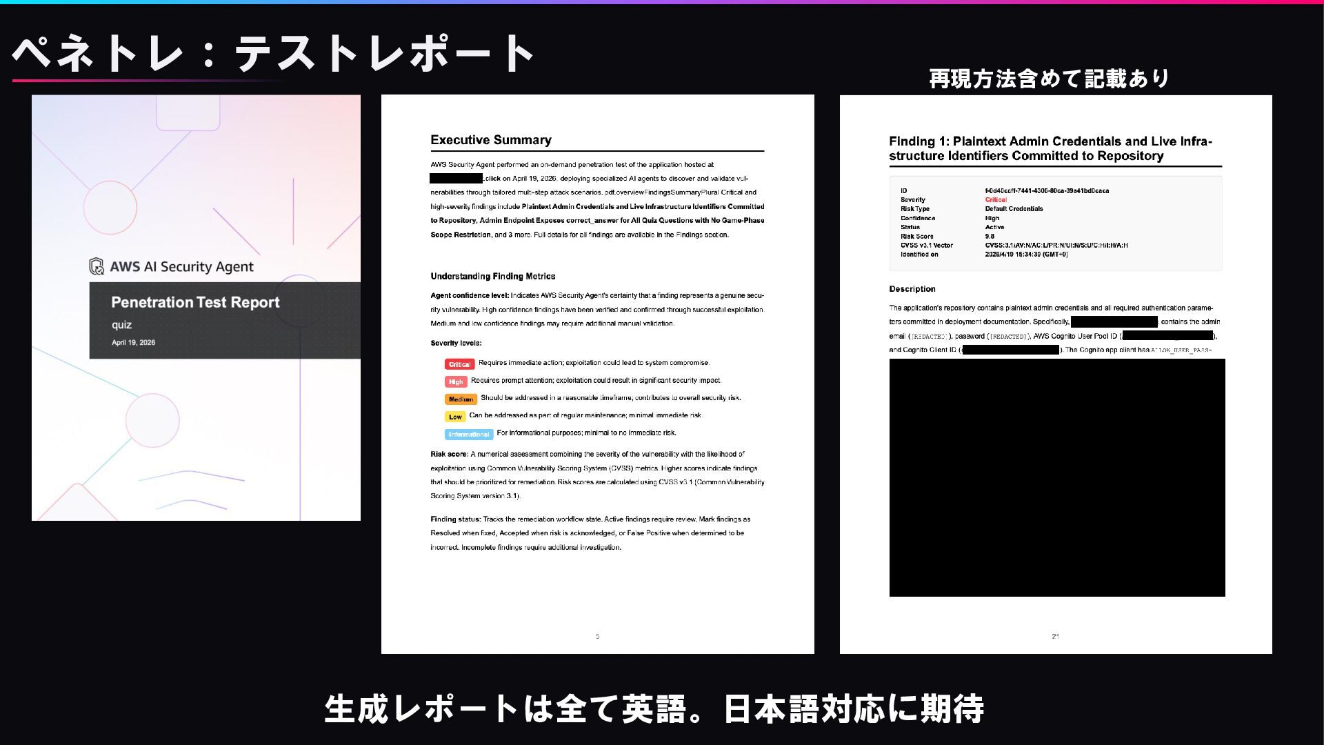 ペネトレ:テストレポート 生成レポートは全て英語。日本語対応に期待 再現方法含めて記載あり