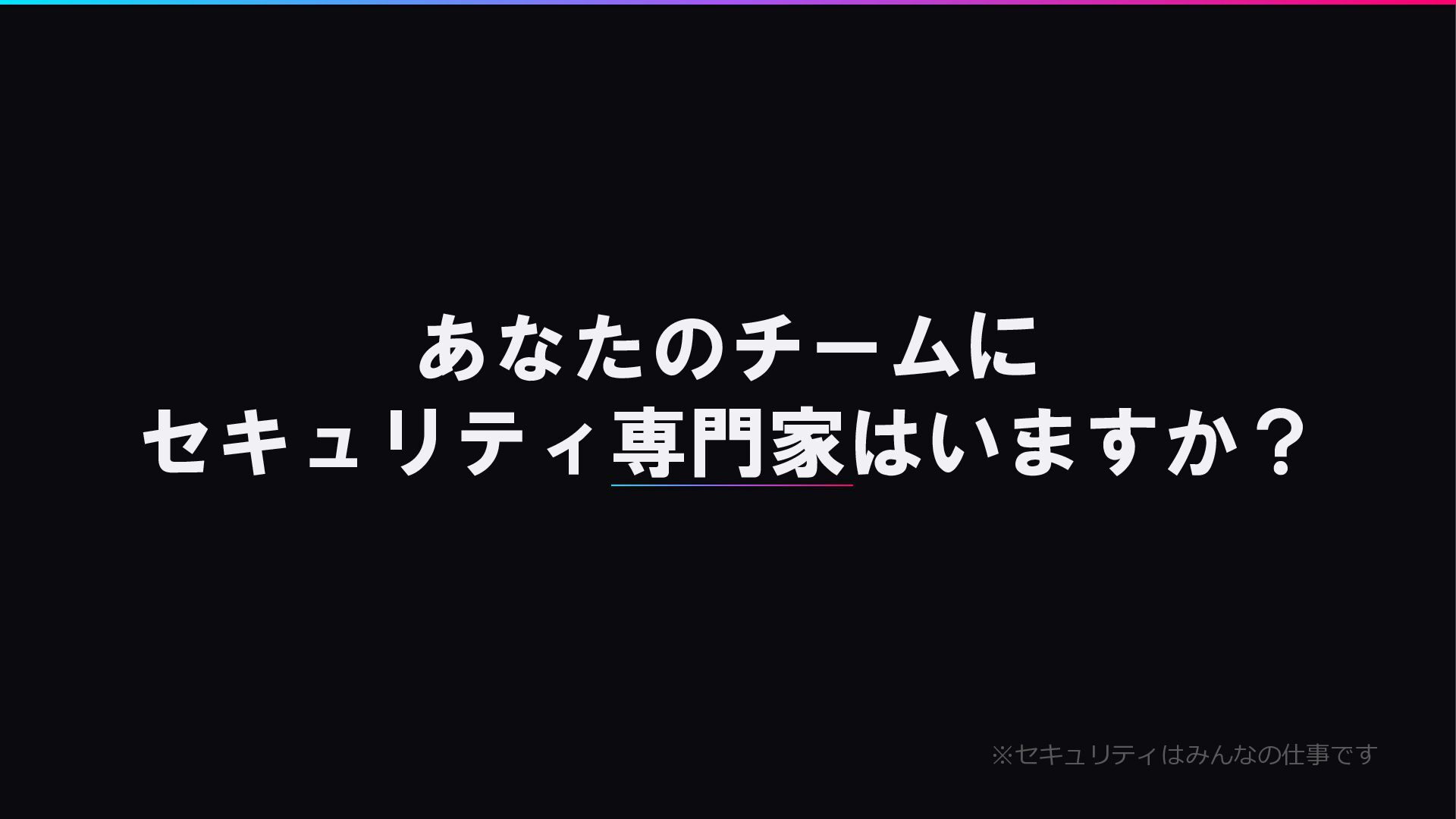 あなたのチームに セキュリティ専門家はいますか? ※セキュリティはみんなの仕事です