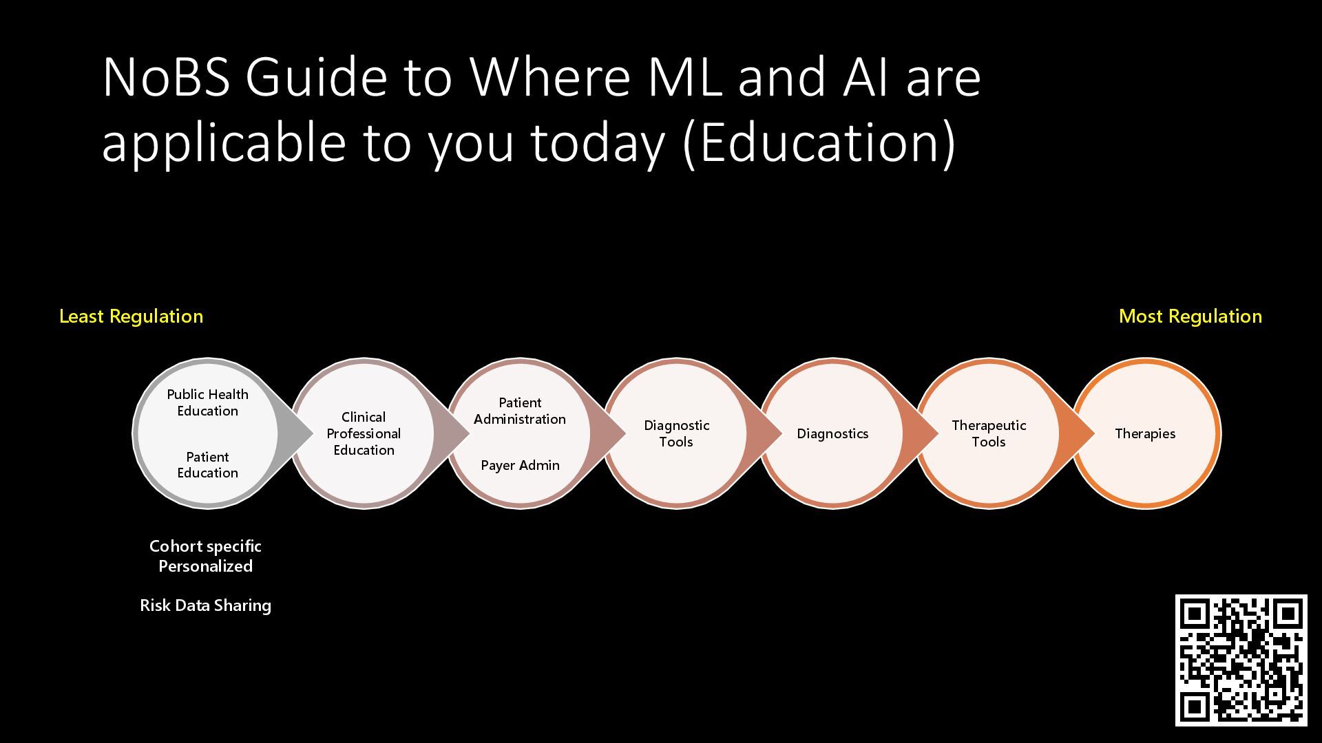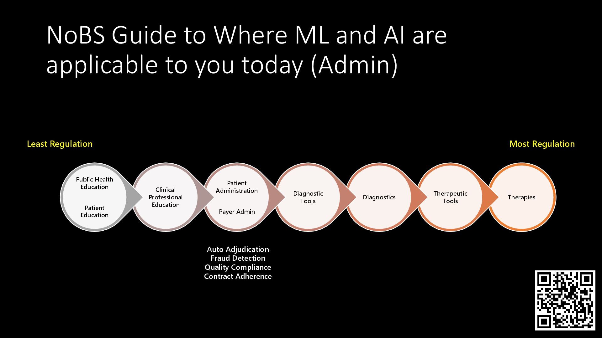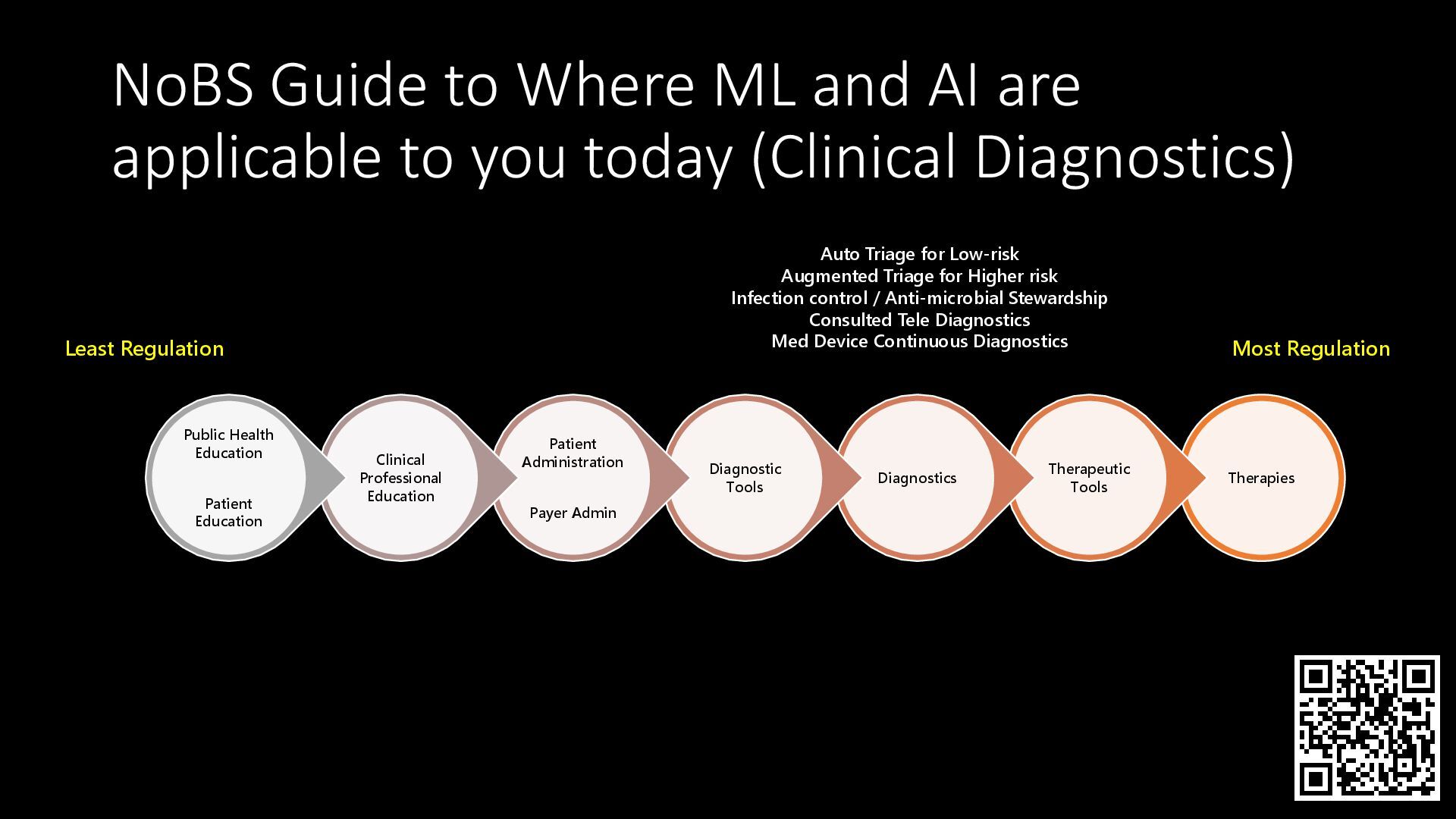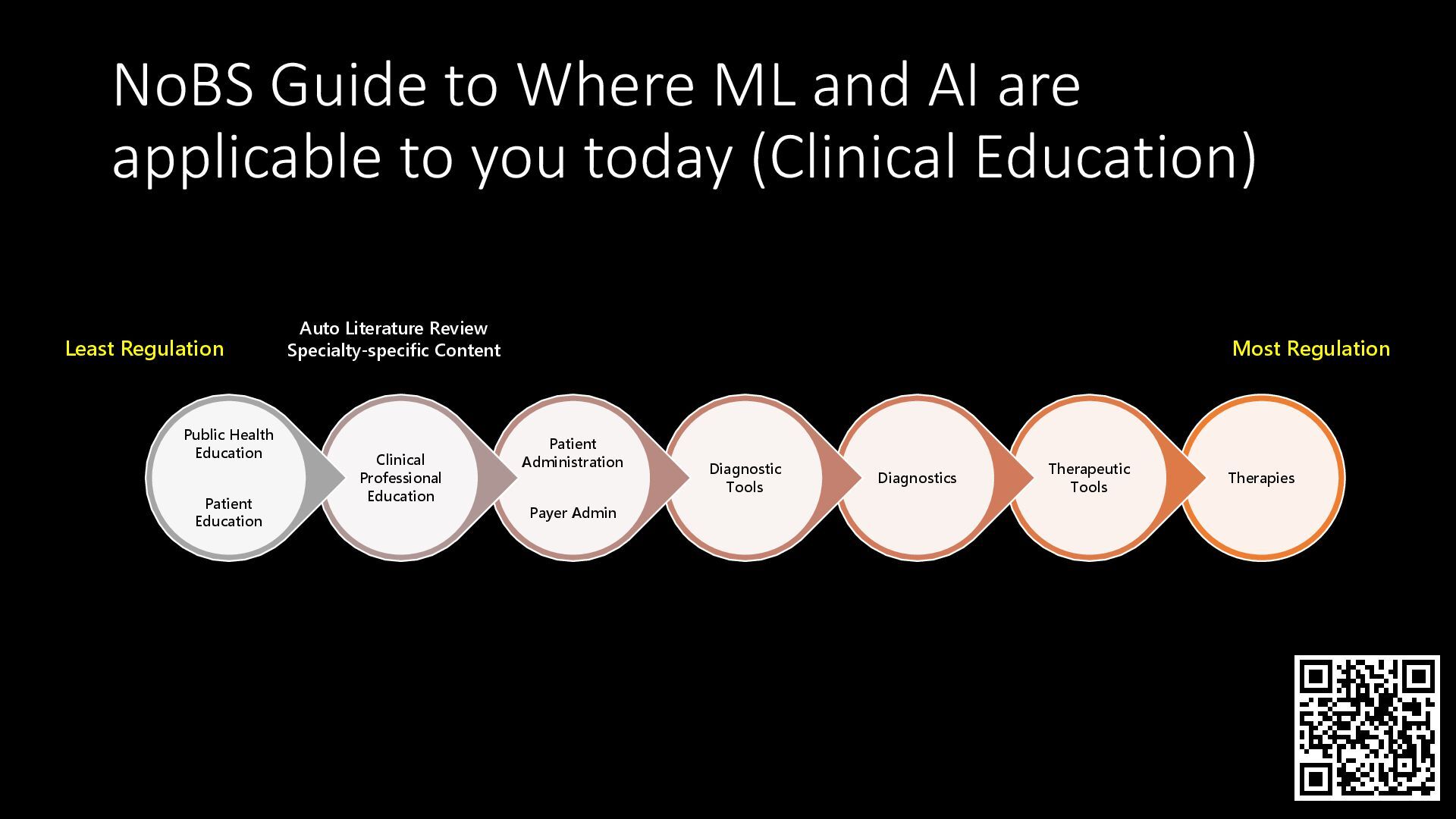 A “NoBS” guide maps where AI and ML are practical today across education, diagnostics, therapeutics, administration, and self-service health, clarifying that AI’s regulatory and clinical maturity varies widely across domains. While AI can automate low-risk or routine processes, clinical accountability, ethical reasoning, and contextual decision-making remain human responsibilities.