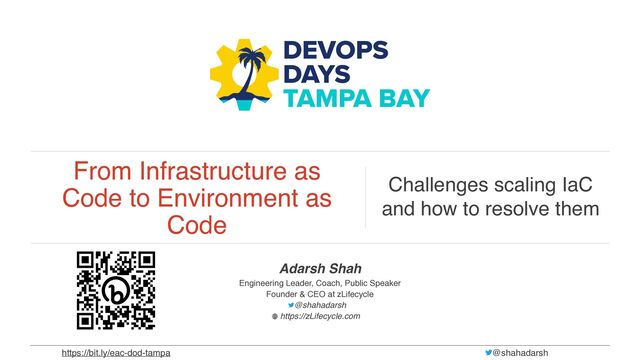 Infrastructure as Code has made managing infrastructure easier in a lot of ways, but there are many challenges that companies accept as the cost of adopting IaC especially when scaling. This talk digs into these challenges & introduces Environment as Code that helps resolve those challenges.