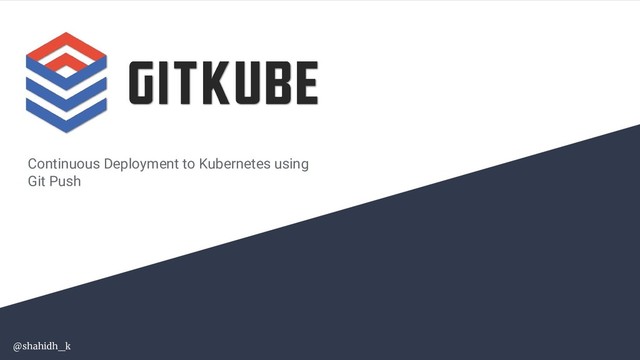 <commit> git push dev my-branch:master • git push to apply changes to kubernetes objects. • Every developer is familiar with git. • Quick iteration time when used on dev/staging clusters • Simple permission system based on public keys • Very small surface area. Can easily be replaced with more sophisticated CI/CD pipelines when moving to production.