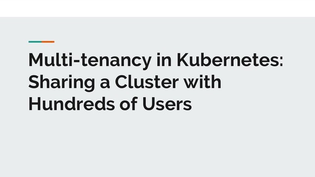 Building on Kubernetes: Bringing Google-Scale Container Orchestration and Management to the Enterprise • Hard Multi-Tenancy in Kubernetes • Multitenancy Deep Dive • Kubernetes Multitenancy Working Group