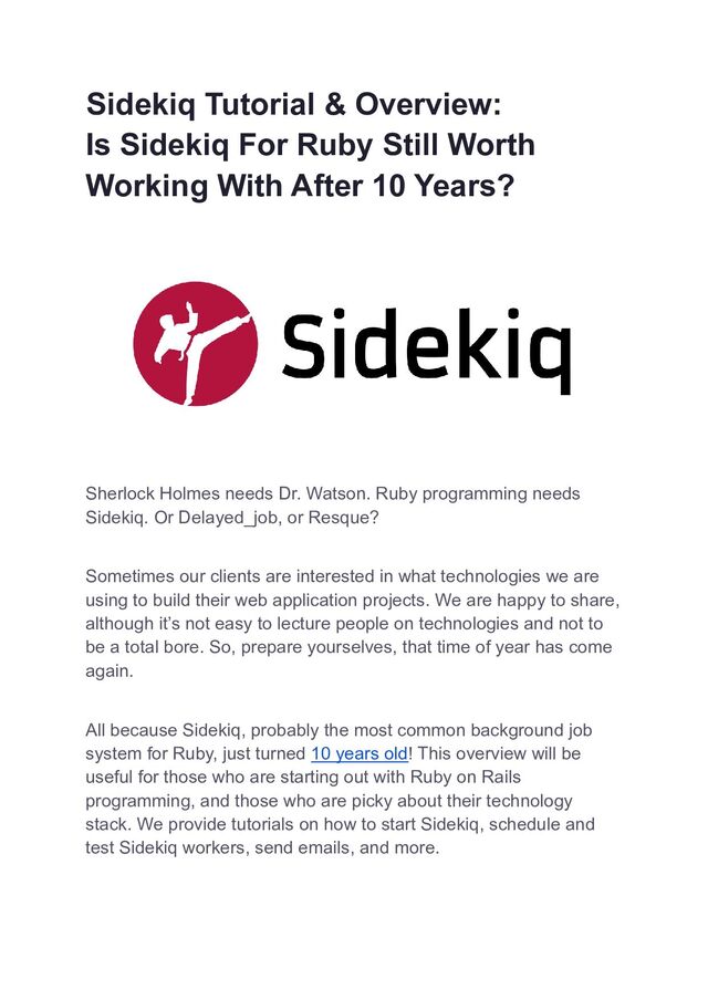 Sidekiq allows you to scale your application by performing work in the background. It came out 10 years ago, in 2012!