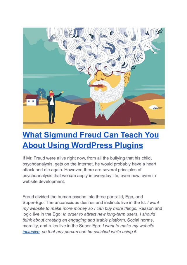 WordPress plugins are tools, code to improve a website. Knowing this, we can easily imagine that they belong to the Ego part in the Freud’s system of the world.