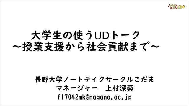 大学生の使うUDトーク 〜授業支援から社会貢献まで〜 長野大学ノートテイクサークルこだま マネージャー 上村深葵