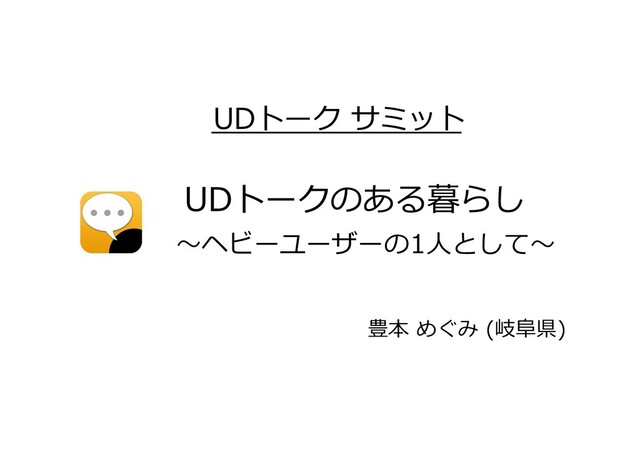 UDトーク サミット UDトークのある暮らし 〜ヘビーユーザーの1⼈として〜 豊本 めぐみ (岐⾩県)